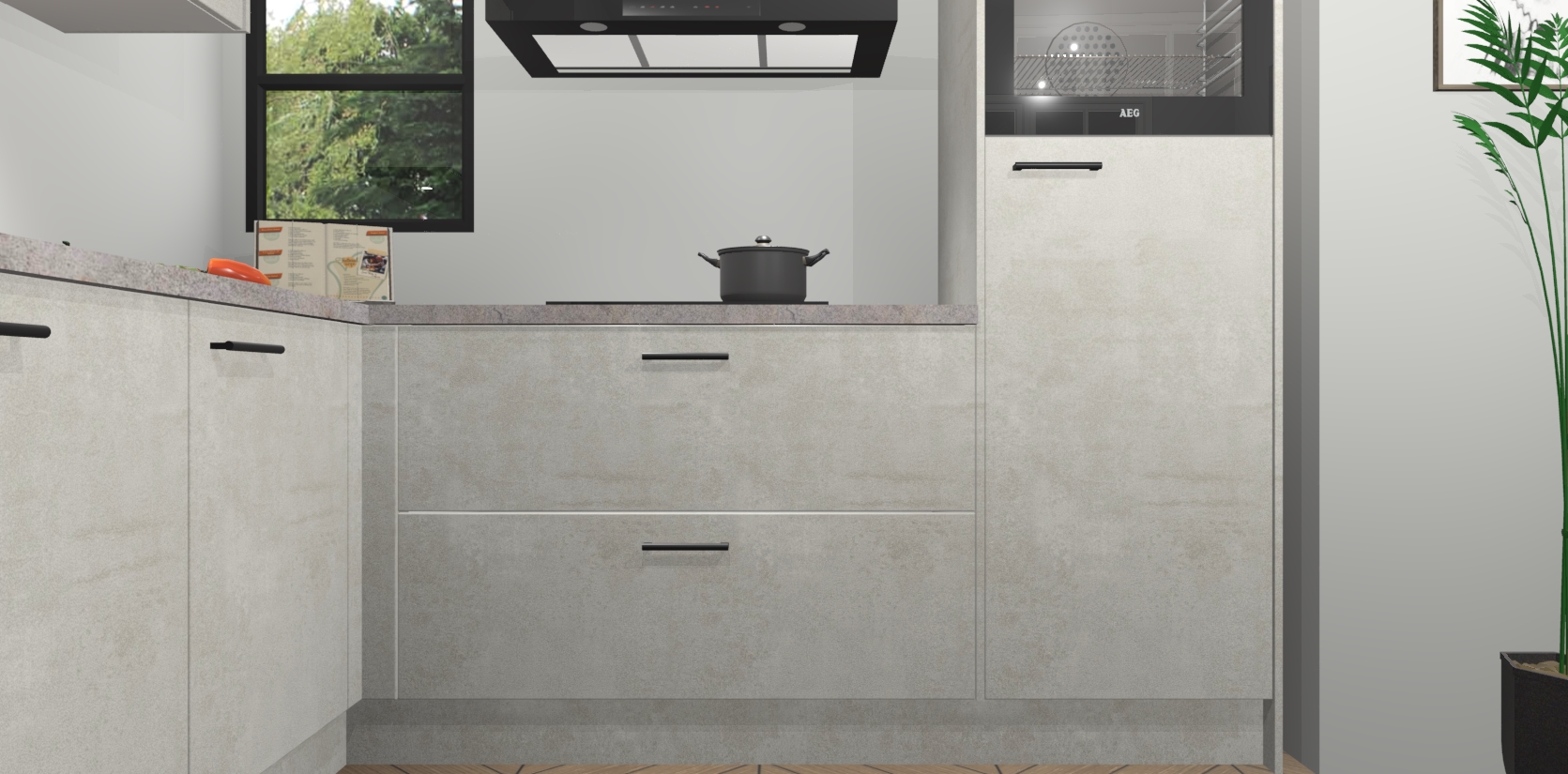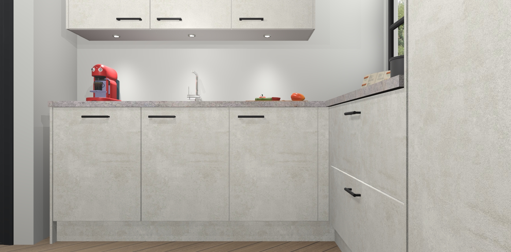 Inclusief plinten, stelpoten en werkblad