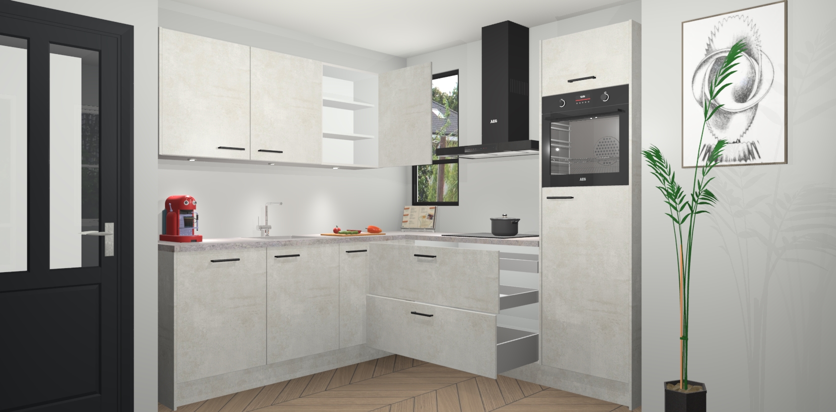 Als extra werd de prijs zo laag mogelijk vastgesteld, zonder aan de kwaliteit te raken. Zo heb je gegarandeerde Duitse keukenkwaliteit waarmee je jarenlang plezier beleeft aan het ontwerp. En dat alles wordt gecombineerd met een supersnelle service van maar liefst 7 weken!