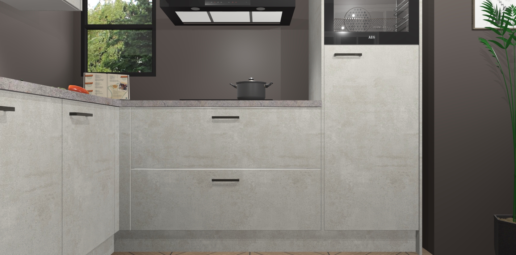 Inclusief plinten, stelpoten en werkblad