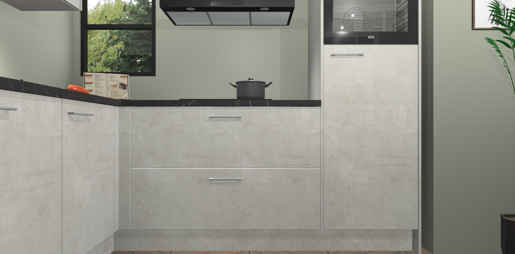 Inclusief plinten, stelpoten en werkblad