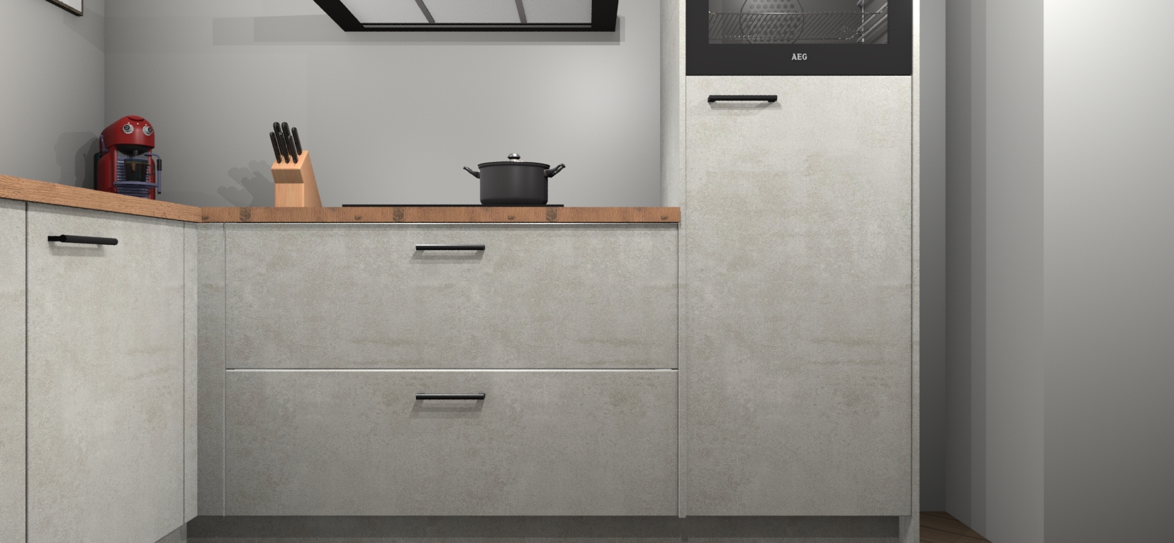 Inclusief plinten, stelpoten en werkblad