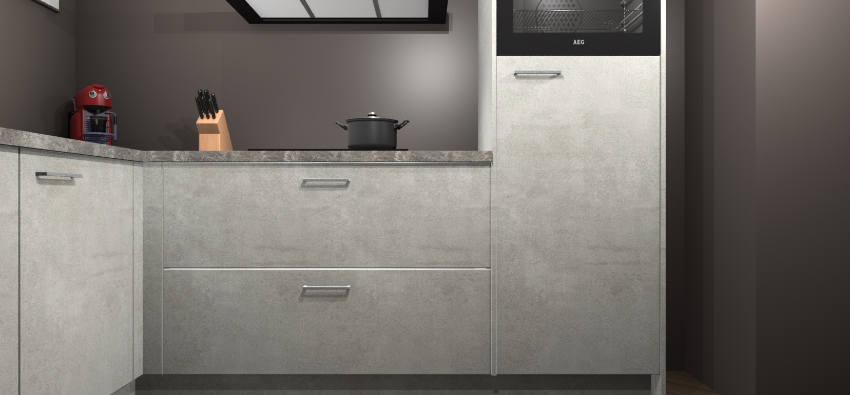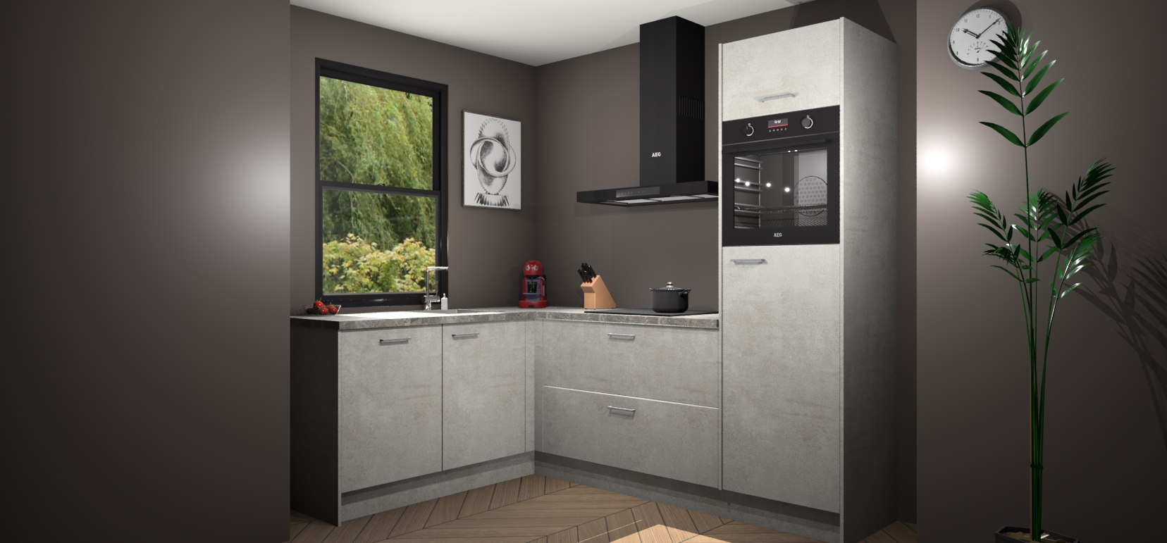 Deze prachtige hoekkeuken heeft alle benodigdheden om uw droomkook- en eetruimte compleet te maken. De Beton Opaal kasten bieden een echo van raffinement, terwijl de 5 inbouwapparaten genoeg opties bieden voor het bereiden van heerlijke maaltijden. De oven, inductiekookplaat, afzuigkap, vaatwasser en koelkast zorgen ervoor dat u tijd in de keuken zo efficiënt mogelijk verloopt, terwijl ze ook dat extra vleugje luxe bieden.