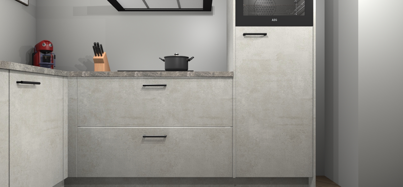 Inclusief plinten, stelpoten en werkblad