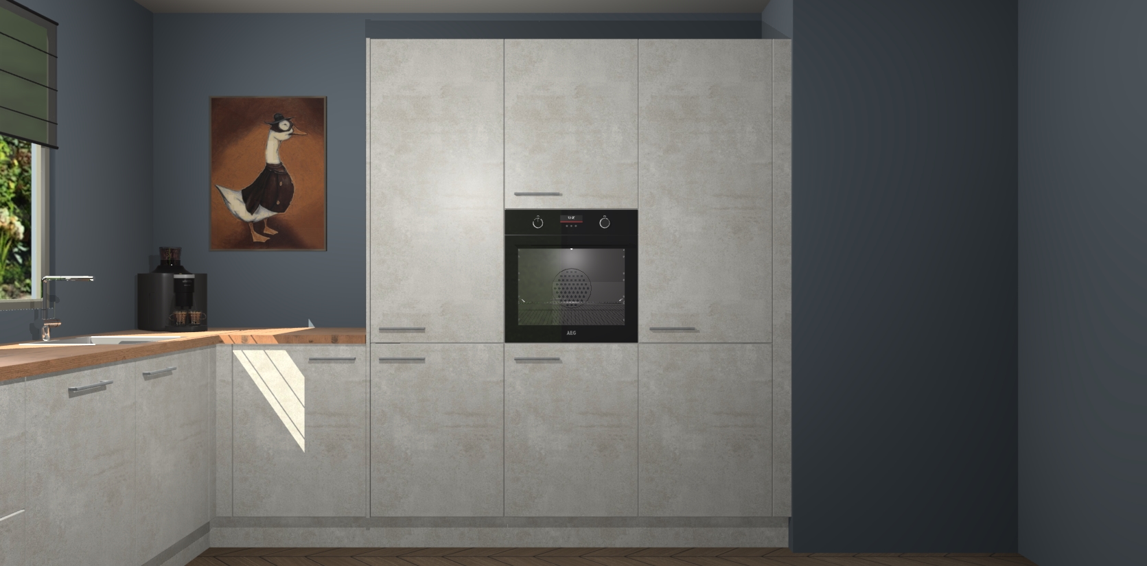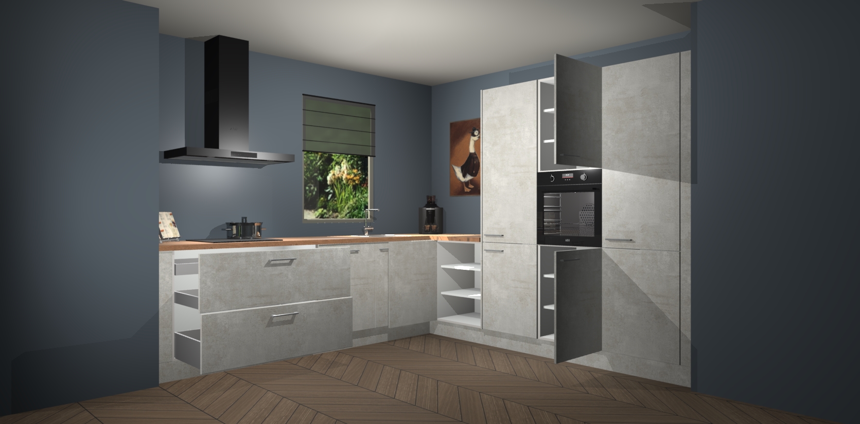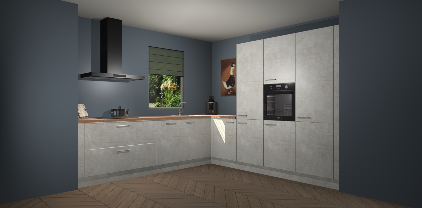 Welkom bij de Beton Opaal keuken Laos. Deze prachtige keuken zal de komende jaren het middelpunt van de belangstelling in uw huis zijn. Uitgerust met vijf inbouwapparaten komt u nooit kookgereedschap tekort. Bovendien geeft de warme houtlook elke ruimte een uitnodigende en tijdloze uitstraling.