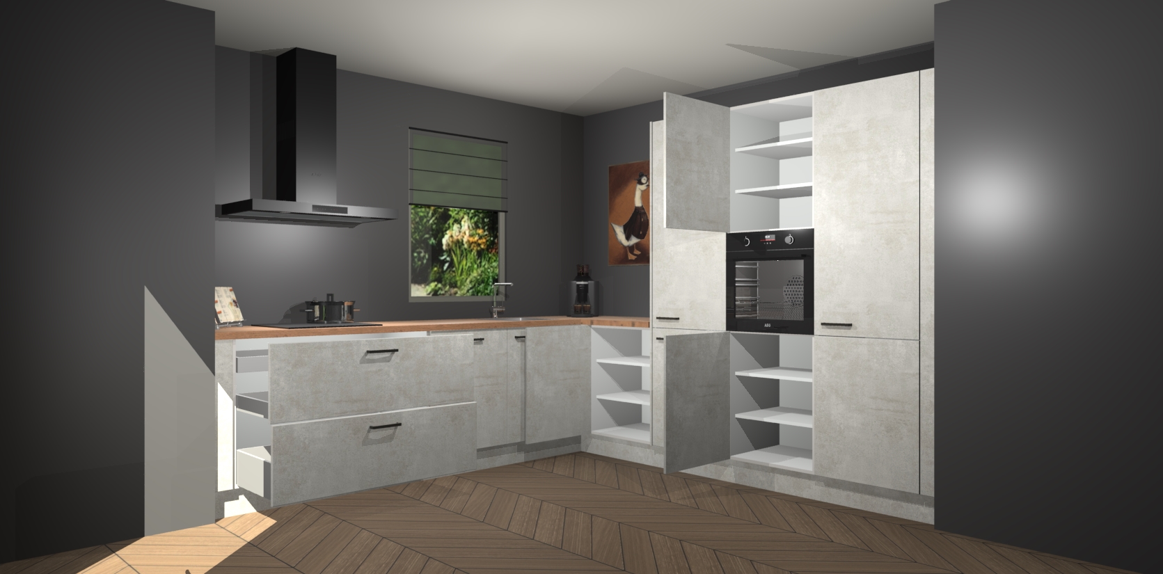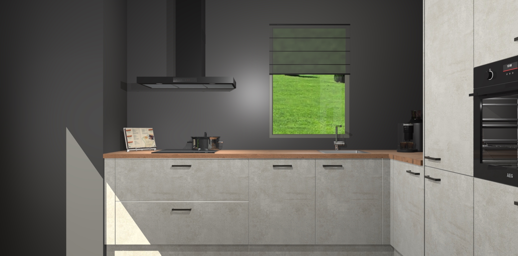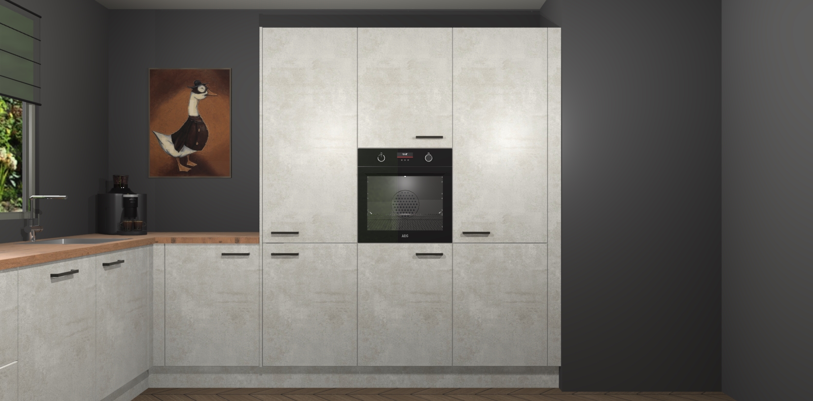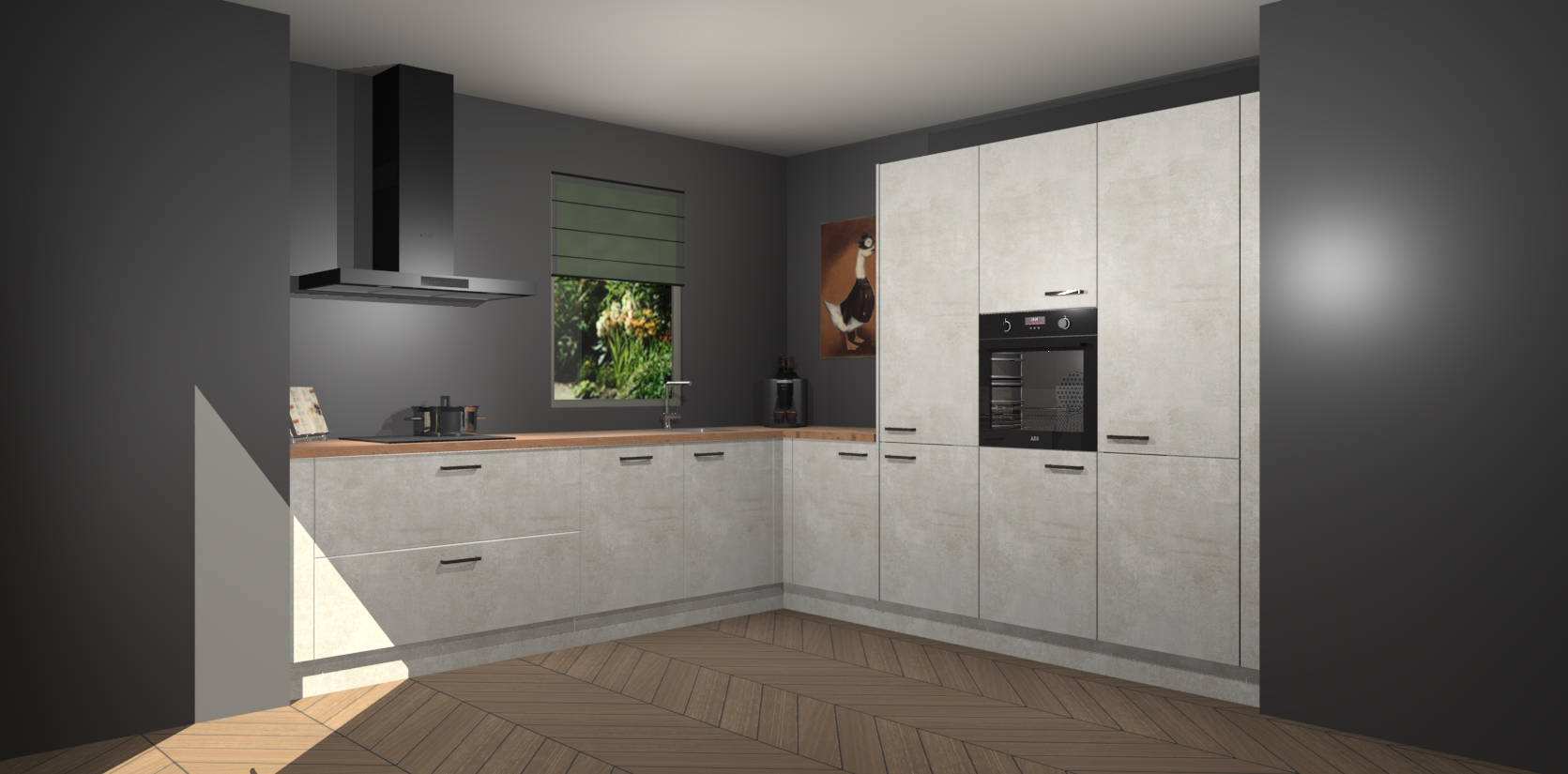 Welkom bij de Beton Opaal keuken Laos. Deze prachtige keuken zal de komende jaren het middelpunt van de belangstelling in uw huis zijn. Uitgerust met vijf inbouwapparaten komt u nooit kookgereedschap tekort. Bovendien geeft de warme houtlook elke ruimte een uitnodigende en tijdloze uitstraling.