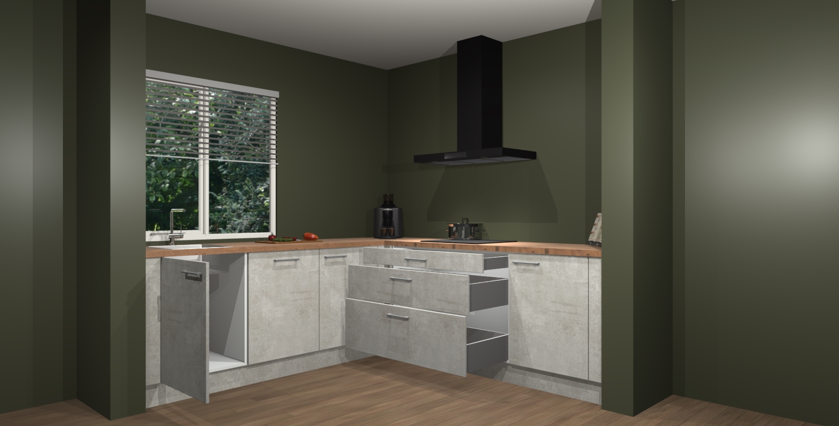 Inclusief plinten, stelpoten en werkblad