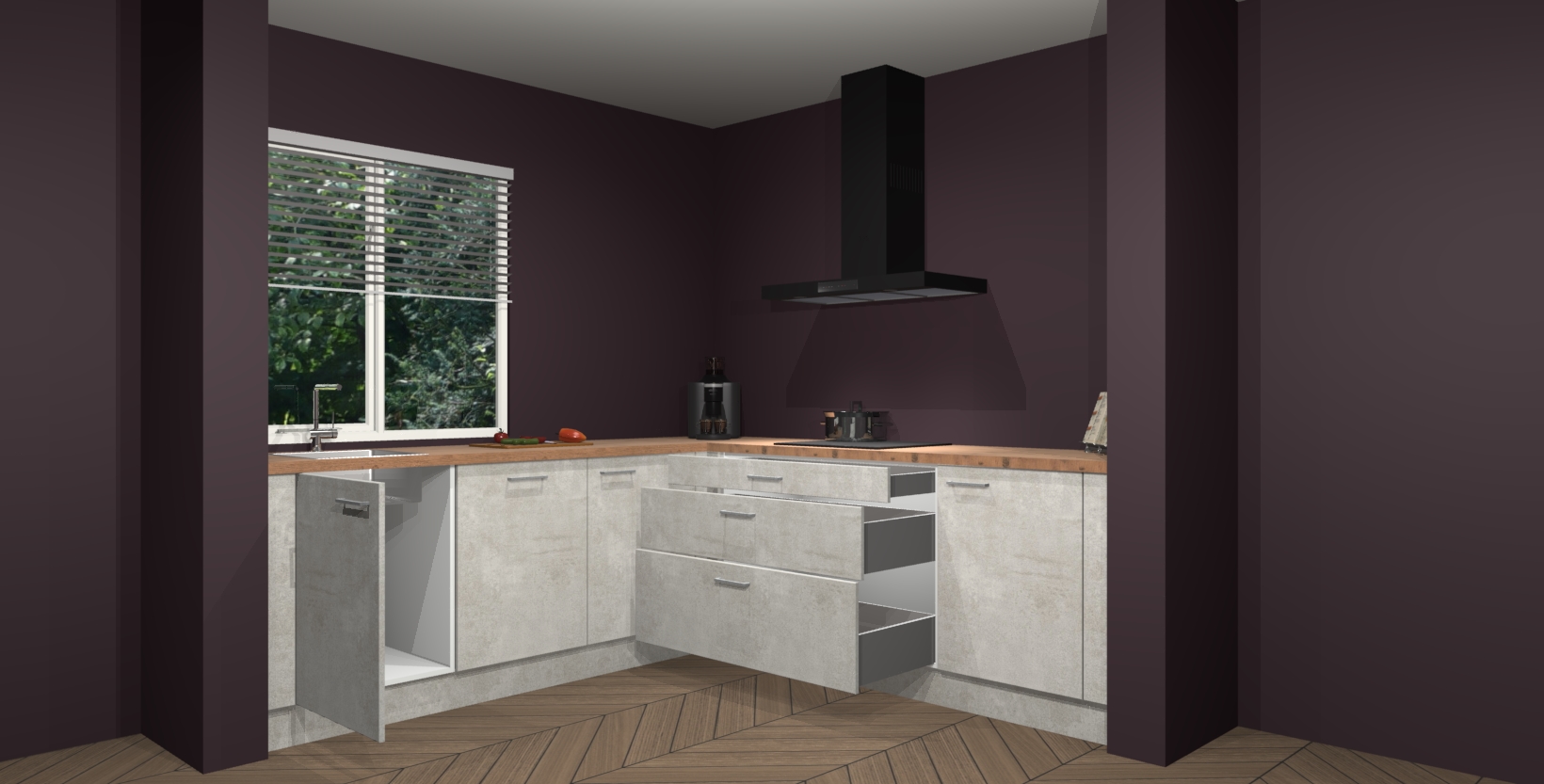 Inclusief plinten, stelpoten en werkblad