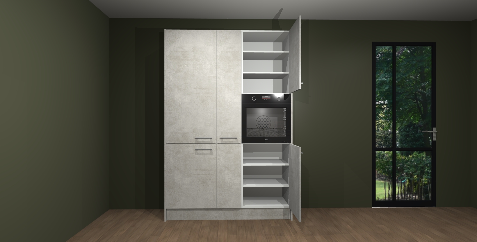 Met een modern, tijdloos design en ruime opslagruimte, zult u zich in no-time thuis voelen in uw nieuwe keuken. Uw leven wordt eenvoudiger met de soft-close deuren die voor het ultieme stille comfort zorgen - geen geluid dat u stoort terwijl u kookt. Ook is de keuken voorzien van 5 ingebouwde apparaten: een oven, inductie kookplaat, afzuigkap, vaatwasser en koelkast. Deze kunnen gemakkelijk na bestelling worden bijgewerkt naar AEG - waardoor uw luxe ervaring compleet is.