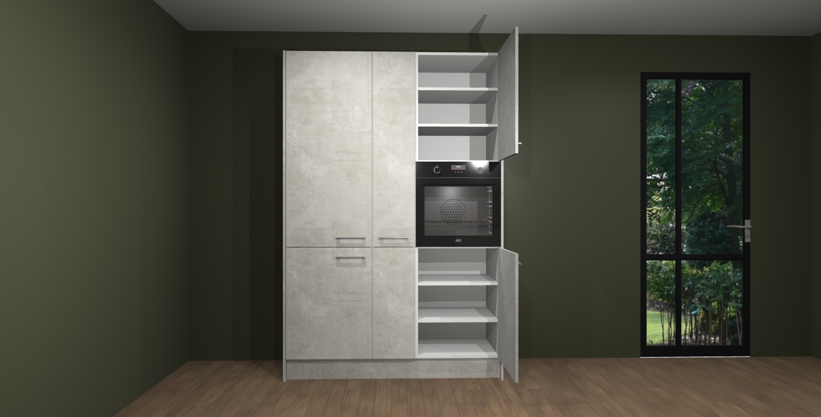 Met een modern, tijdloos design en ruime opslagruimte, zult u zich in no-time thuis voelen in uw nieuwe keuken. Uw leven wordt eenvoudiger met de soft-close deuren die voor het ultieme stille comfort zorgen - geen geluid dat u stoort terwijl u kookt. Ook is de keuken voorzien van 5 ingebouwde apparaten: een oven, inductie kookplaat, afzuigkap, vaatwasser en koelkast. Deze kunnen gemakkelijk na bestelling worden bijgewerkt naar AEG - waardoor uw luxe ervaring compleet is.
