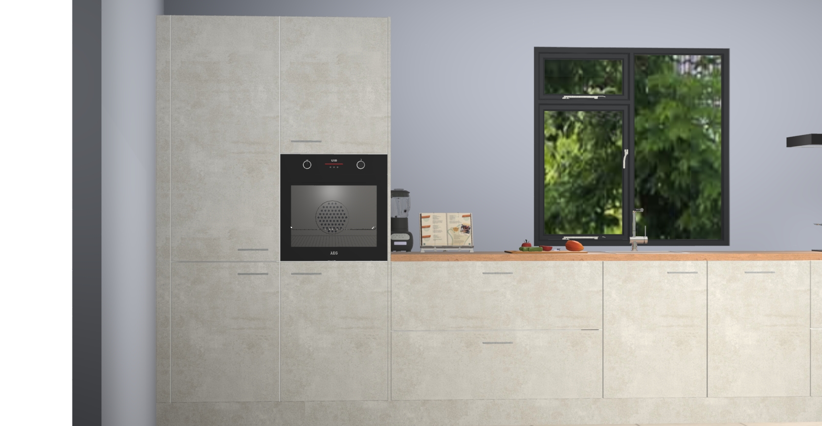 De Beton opaal keuken Lille wordt geleverd met vijf inbouwapparaten - een oven, inductiekookplaat, afzuigkap, vaatwasser en koelkast. Maar dat is nog niet alles! Na bestelling kunnen deze apparaten eenvoudig worden geüpgraded naar premium AEG-apparatuur. Bovendien is er zelfs de optie om de oven te vervangen door een combimagnetron of uw inductiekookplaat te vervangen door een kookplaat met geïntegreerde afzuiging.