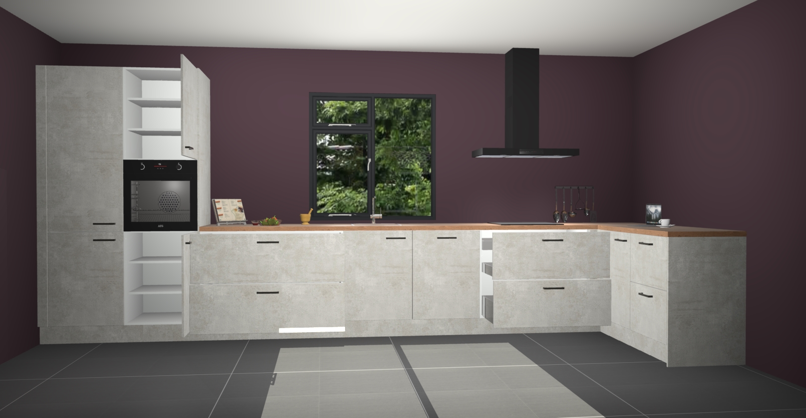 De Beton opaal keuken Lille wordt geleverd met vijf inbouwapparaten - een oven, inductiekookplaat, afzuigkap, vaatwasser en koelkast. Maar dat is nog niet alles! Na bestelling kunnen deze apparaten eenvoudig worden geüpgraded naar premium AEG-apparatuur. Bovendien is er zelfs de optie om de oven te vervangen door een combimagnetron of uw inductiekookplaat te vervangen door een kookplaat met geïntegreerde afzuiging.