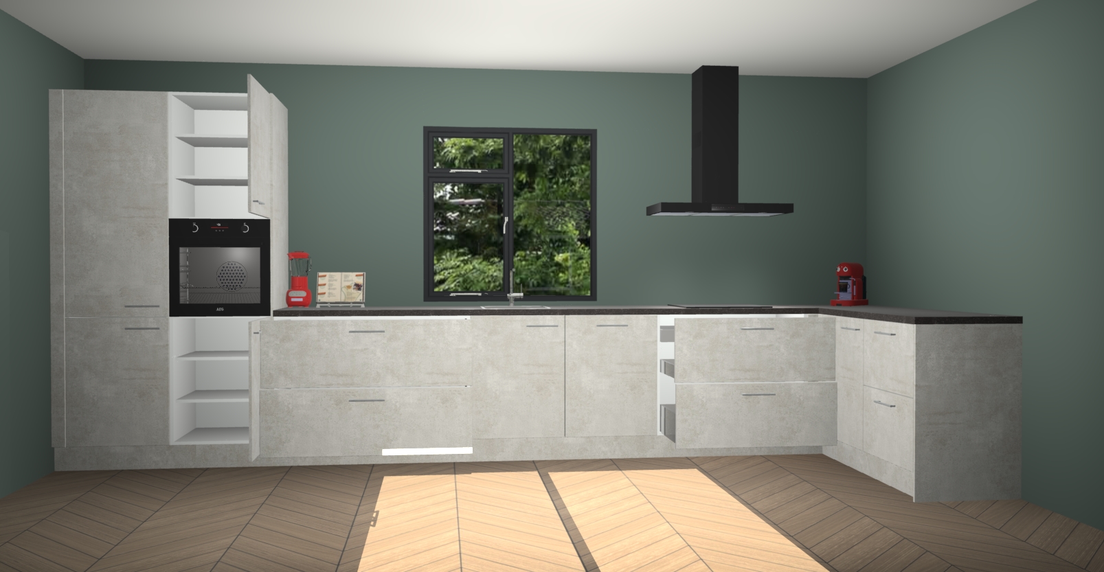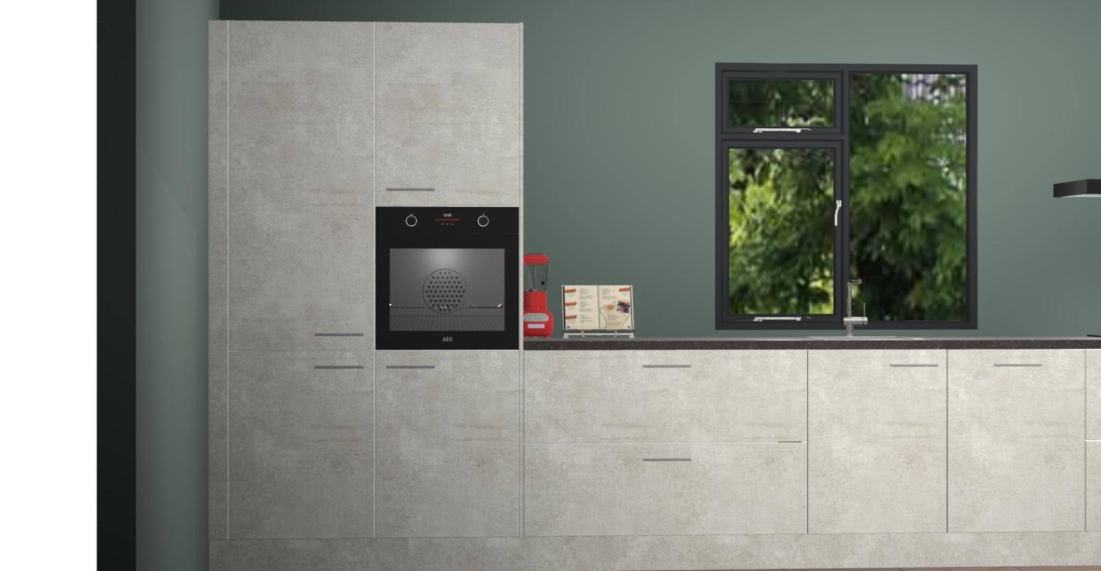 De Beton opaal keuken Lille wordt geleverd met vijf inbouwapparaten - een oven, inductiekookplaat, afzuigkap, vaatwasser en koelkast. Maar dat is nog niet alles! Na bestelling kunnen deze apparaten eenvoudig worden geüpgraded naar premium AEG-apparatuur. Bovendien is er zelfs de optie om de oven te vervangen door een combimagnetron of uw inductiekookplaat te vervangen door een kookplaat met geïntegreerde afzuiging.