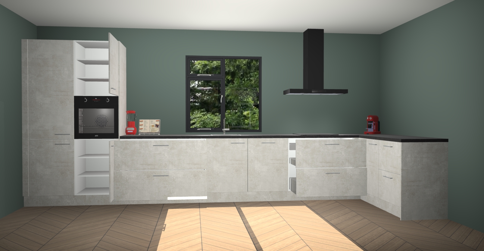 De Beton opaal keuken Lille wordt geleverd met vijf inbouwapparaten - een oven, inductiekookplaat, afzuigkap, vaatwasser en koelkast. Maar dat is nog niet alles! Na bestelling kunnen deze apparaten eenvoudig worden geüpgraded naar premium AEG-apparatuur. Bovendien is er zelfs de optie om de oven te vervangen door een combimagnetron of uw inductiekookplaat te vervangen door een kookplaat met geïntegreerde afzuiging.
