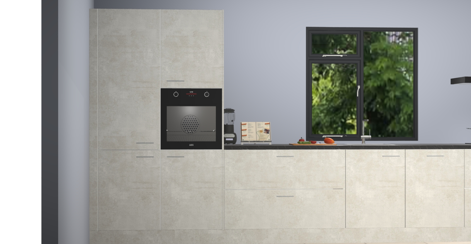De Beton opaal keuken Lille wordt geleverd met vijf inbouwapparaten - een oven, inductiekookplaat, afzuigkap, vaatwasser en koelkast. Maar dat is nog niet alles! Na bestelling kunnen deze apparaten eenvoudig worden geüpgraded naar premium AEG-apparatuur. Bovendien is er zelfs de optie om de oven te vervangen door een combimagnetron of uw inductiekookplaat te vervangen door een kookplaat met geïntegreerde afzuiging.