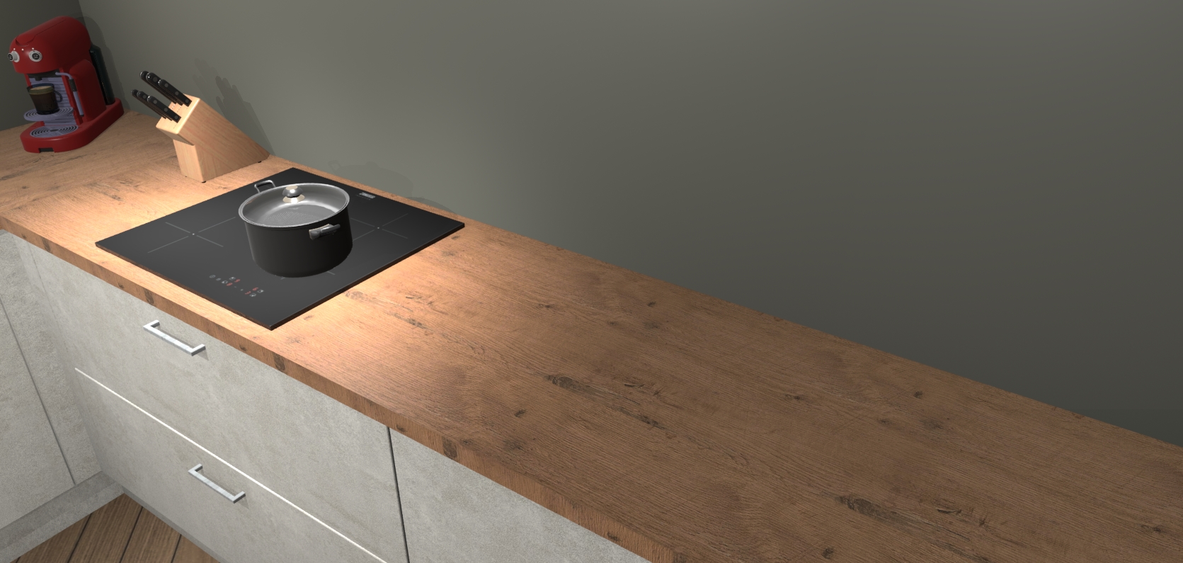 - Bij een hoekwerkblad zijn de hoeken in gevreesd en op maat gemaakt