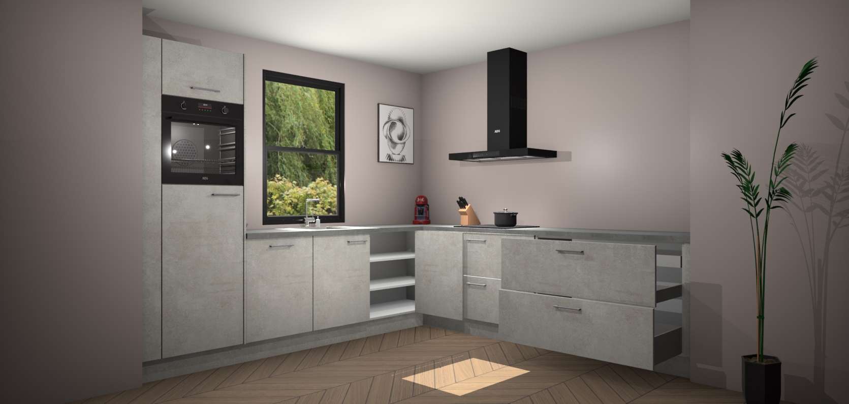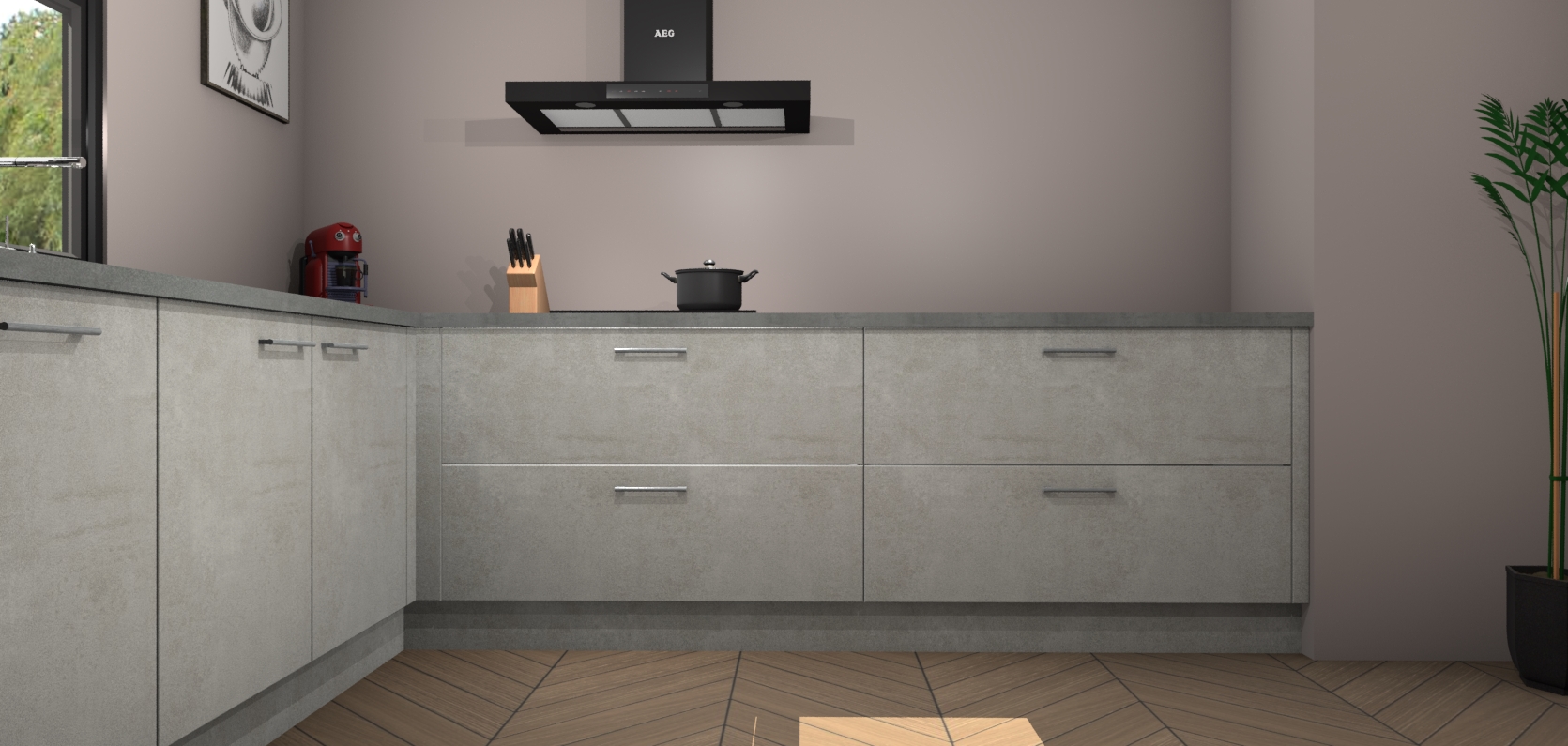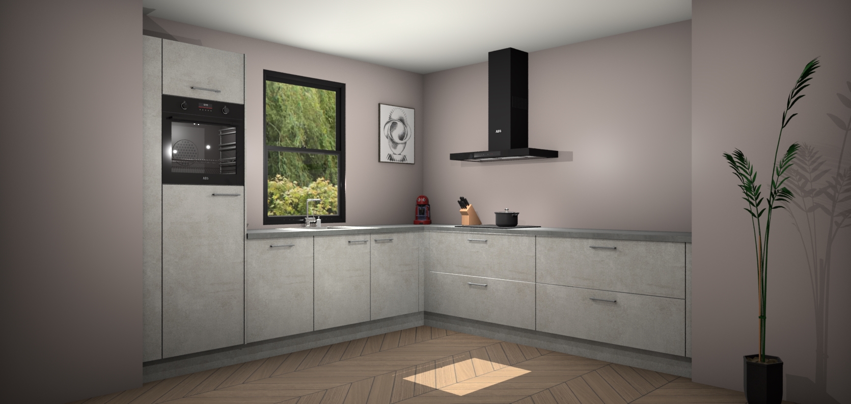 Welkom bij de Beton opaal keuken Lublin. Deze prachtige keuken zal de komende jaren het middelpunt van de belangstelling in uw huis zijn. Uitgerust met vijf inbouwapparaten komt u nooit kookgereedschap tekort. Bovendien geeft de warme houtlook elke ruimte een uitnodigende en tijdloze uitstraling.