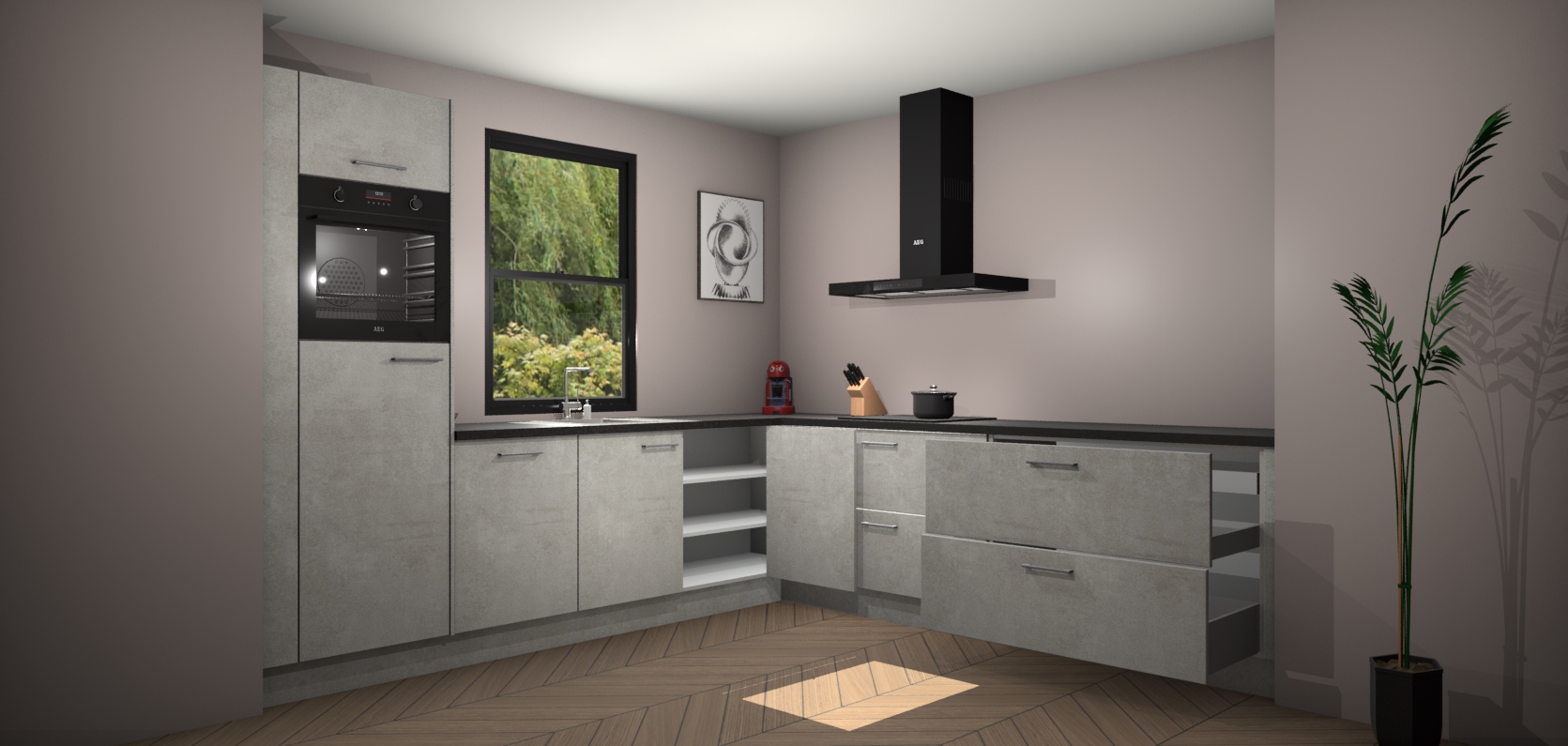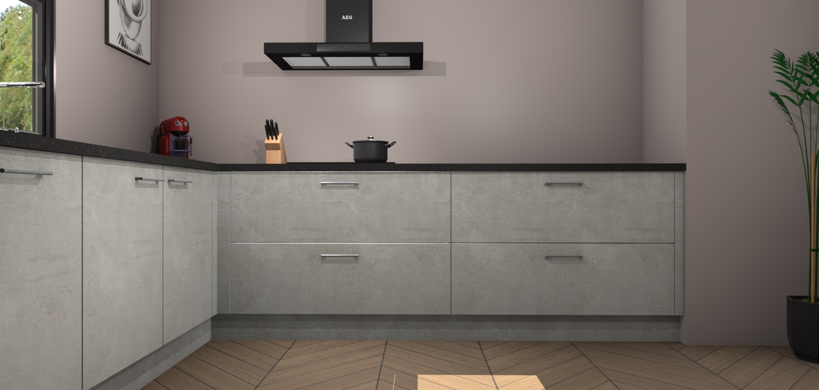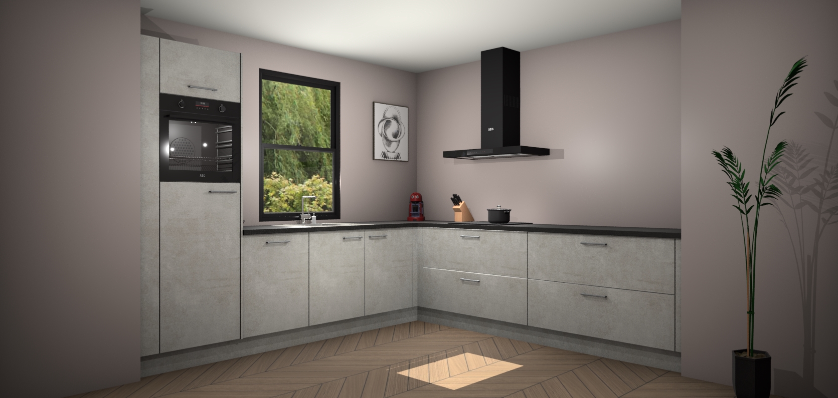 Welkom bij de Beton opaal keuken Lublin. Deze prachtige keuken zal de komende jaren het middelpunt van de belangstelling in uw huis zijn. Uitgerust met vijf inbouwapparaten komt u nooit kookgereedschap tekort. Bovendien geeft de warme houtlook elke ruimte een uitnodigende en tijdloze uitstraling.