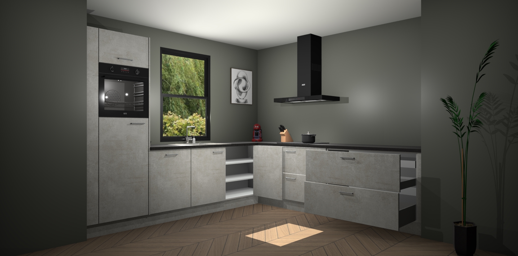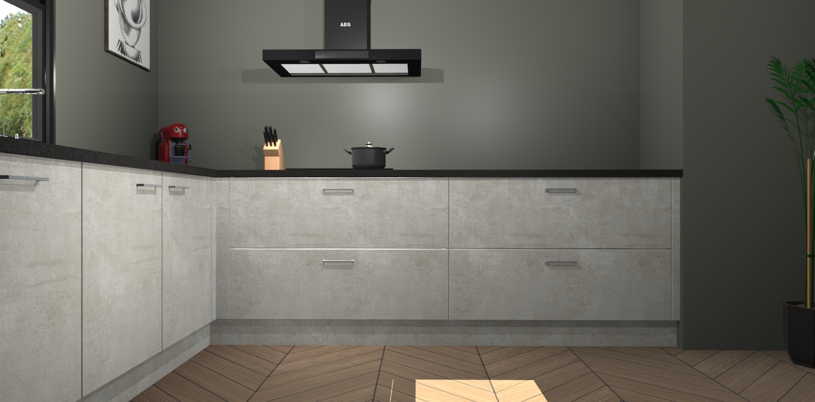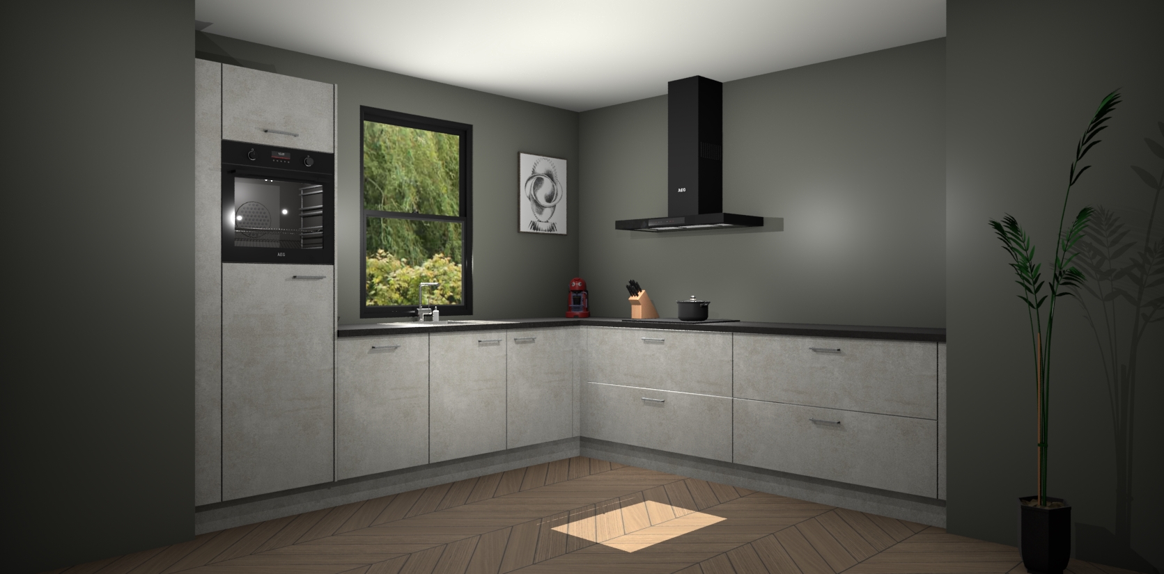 Welkom bij de Beton opaal keuken Lublin. Deze prachtige keuken zal de komende jaren het middelpunt van de belangstelling in uw huis zijn. Uitgerust met vijf inbouwapparaten komt u nooit kookgereedschap tekort. Bovendien geeft de warme houtlook elke ruimte een uitnodigende en tijdloze uitstraling.