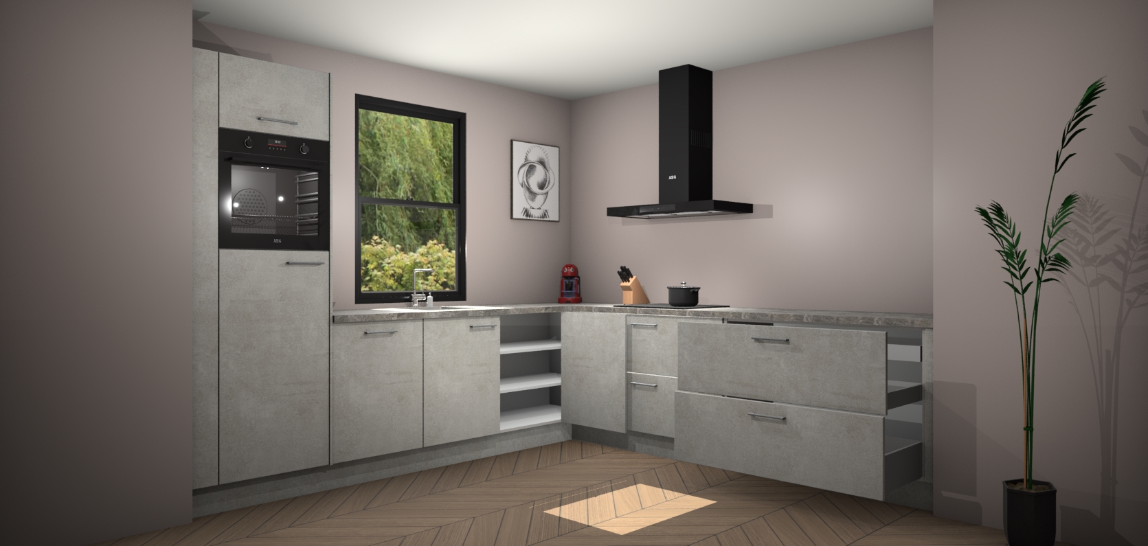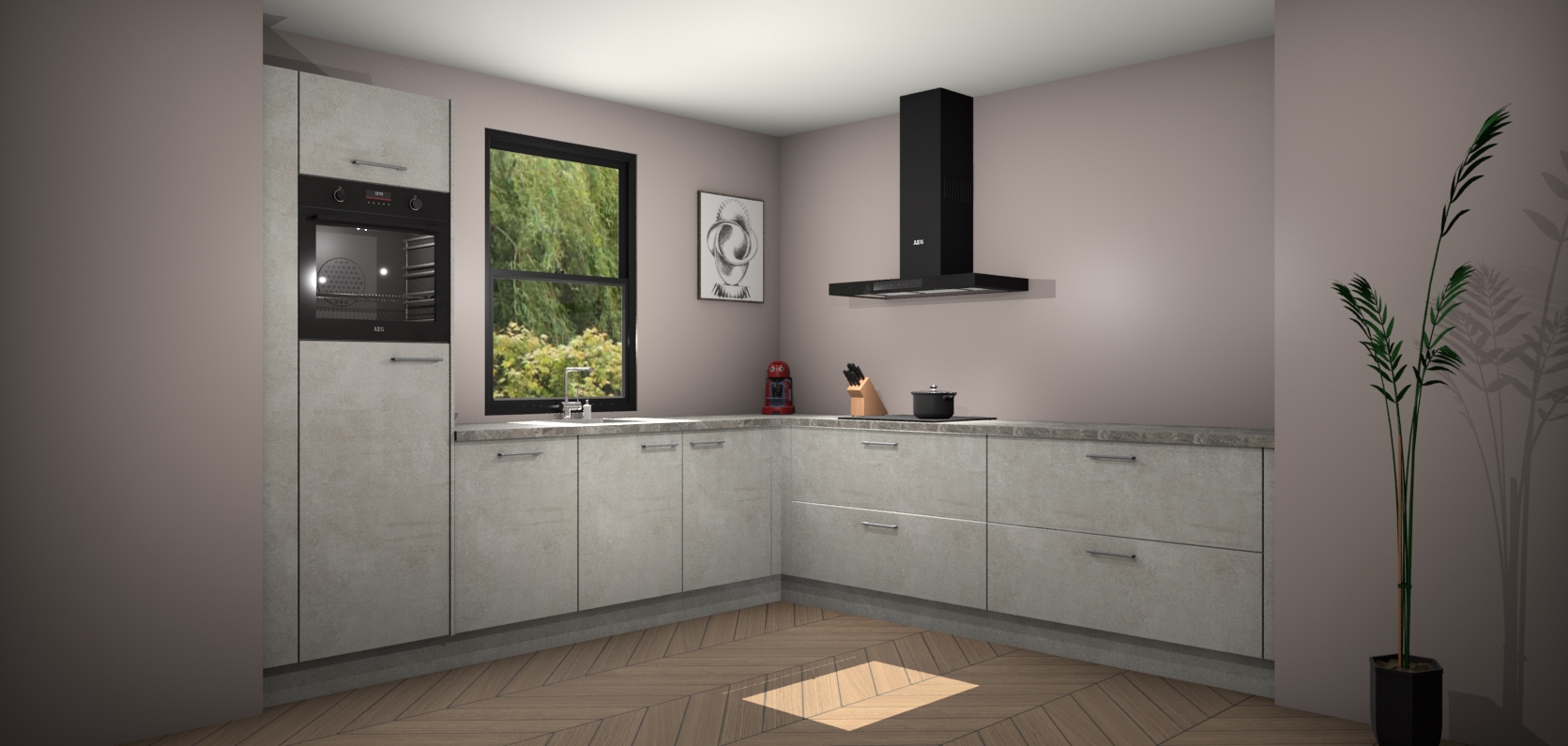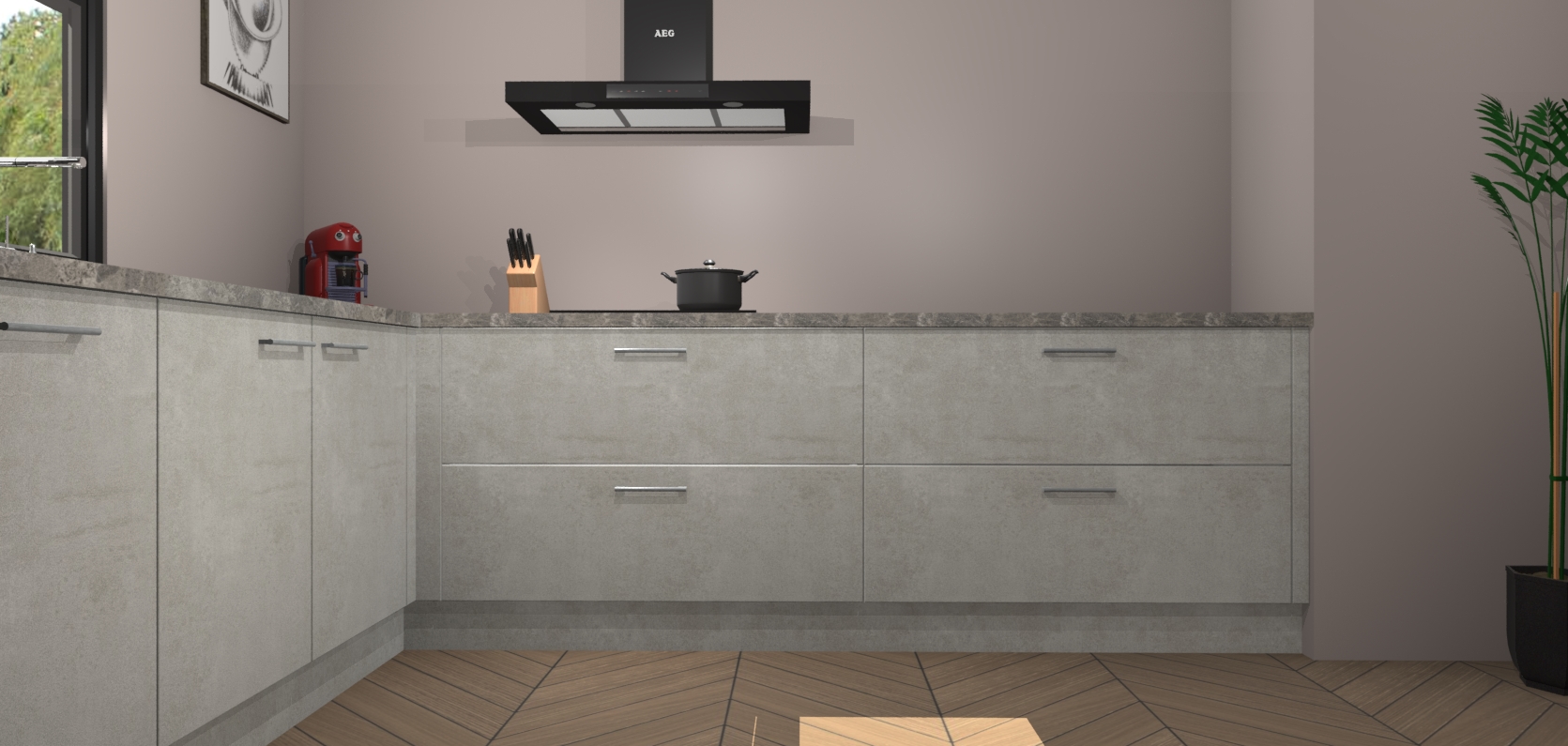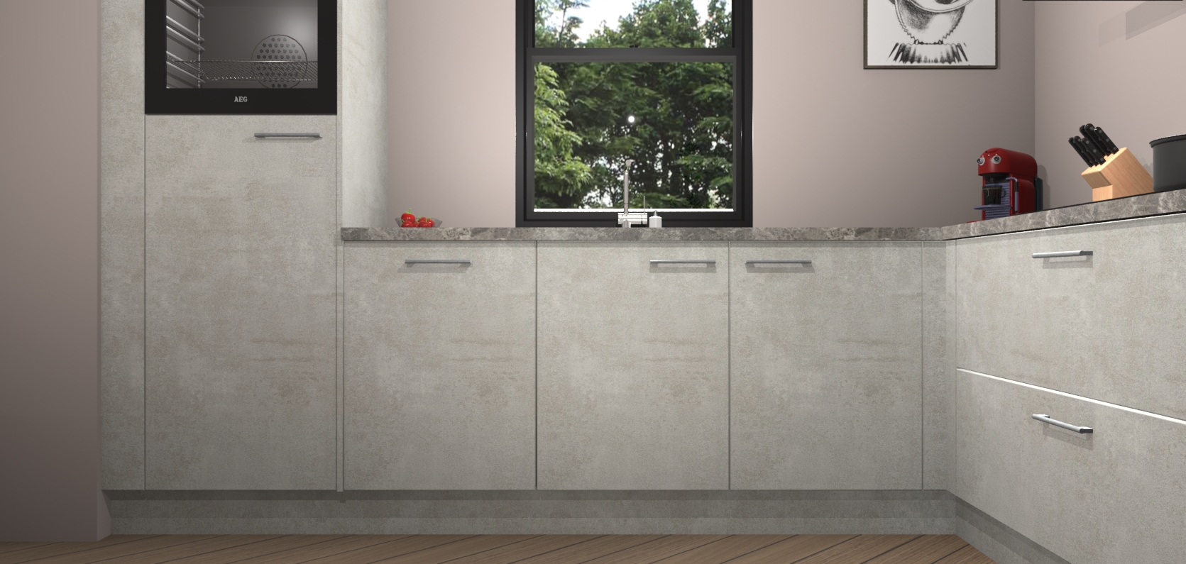 Welkom bij de Beton opaal keuken Lublin. Deze prachtige keuken zal de komende jaren het middelpunt van de belangstelling in uw huis zijn. Uitgerust met vijf inbouwapparaten komt u nooit kookgereedschap tekort. Bovendien geeft de warme houtlook elke ruimte een uitnodigende en tijdloze uitstraling.