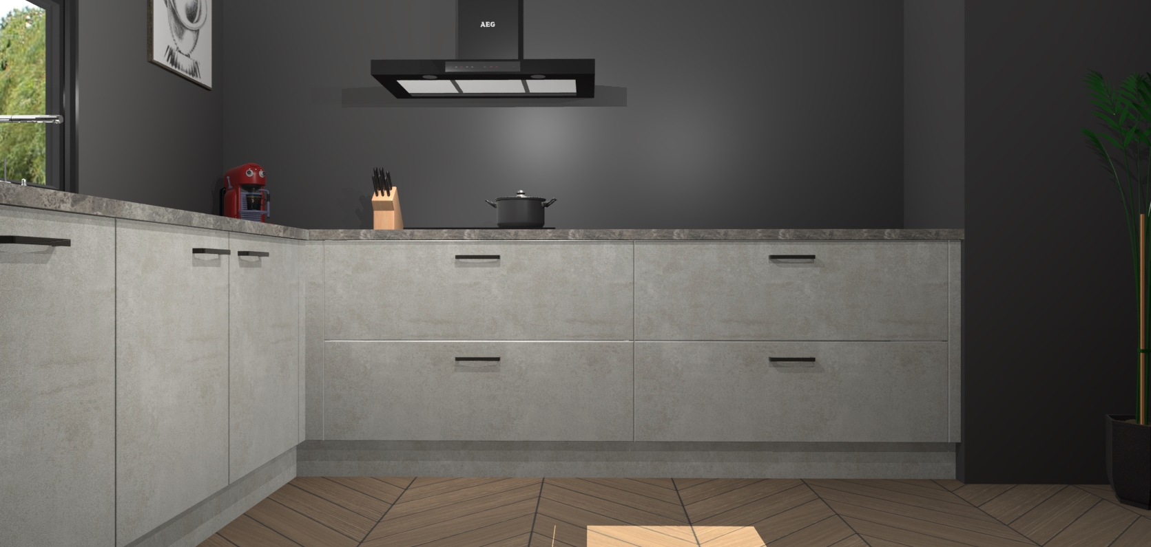 Inclusief plinten, stelpoten en werkblad