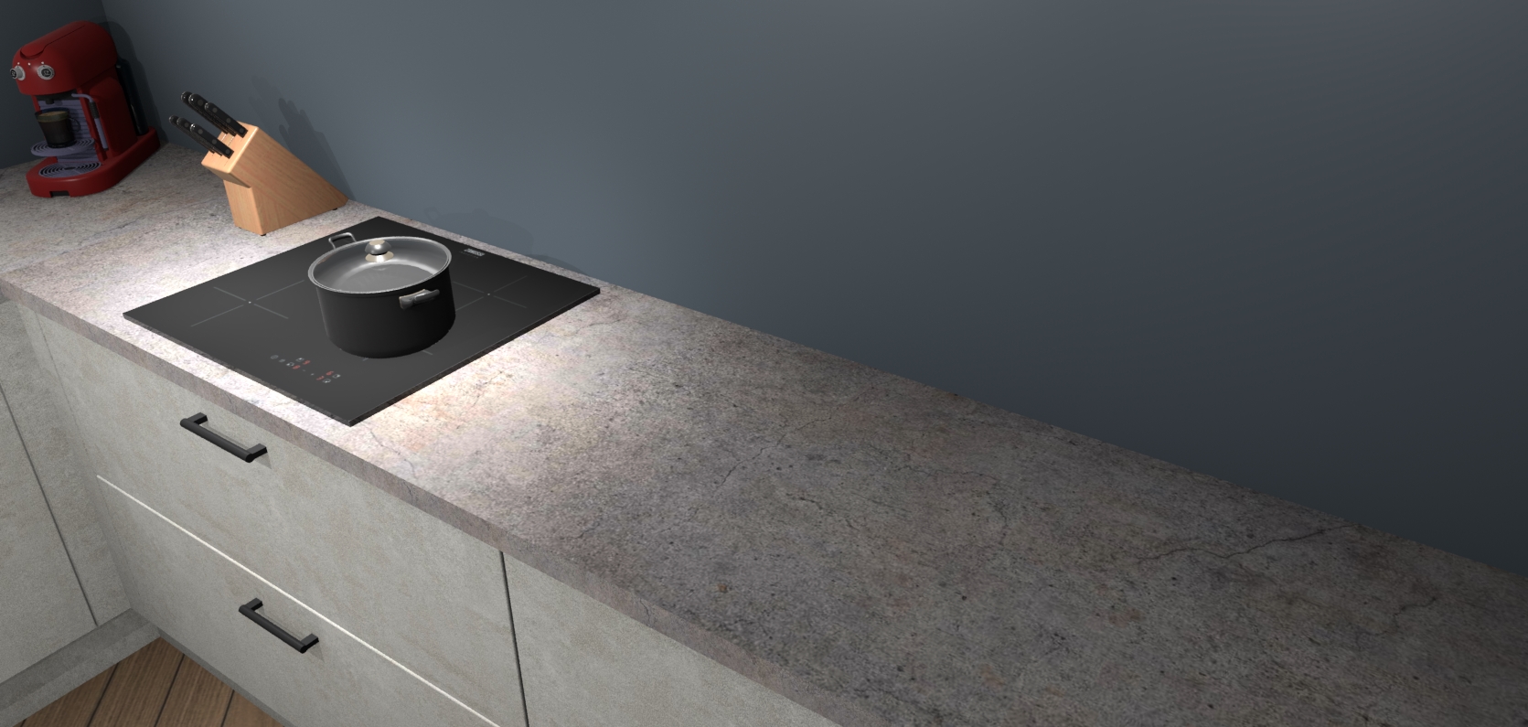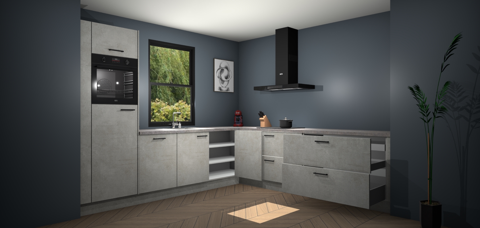 Inclusief plinten, stelpoten en werkblad