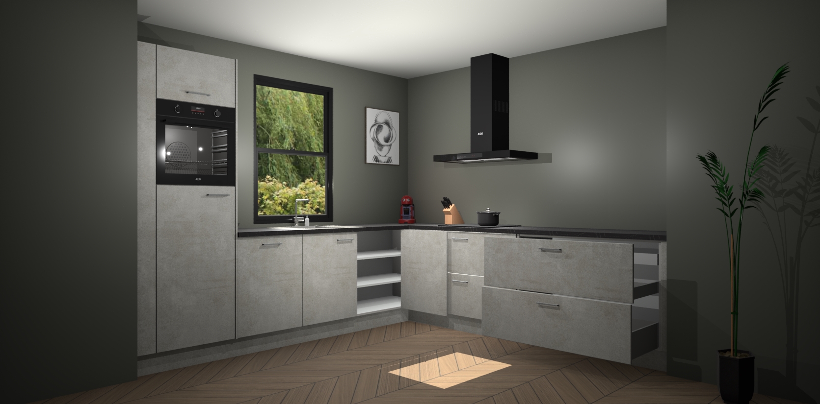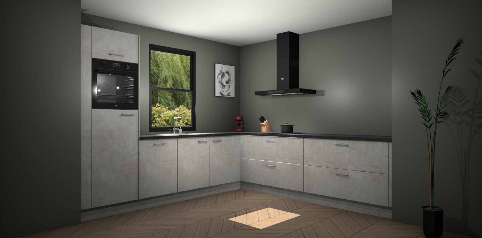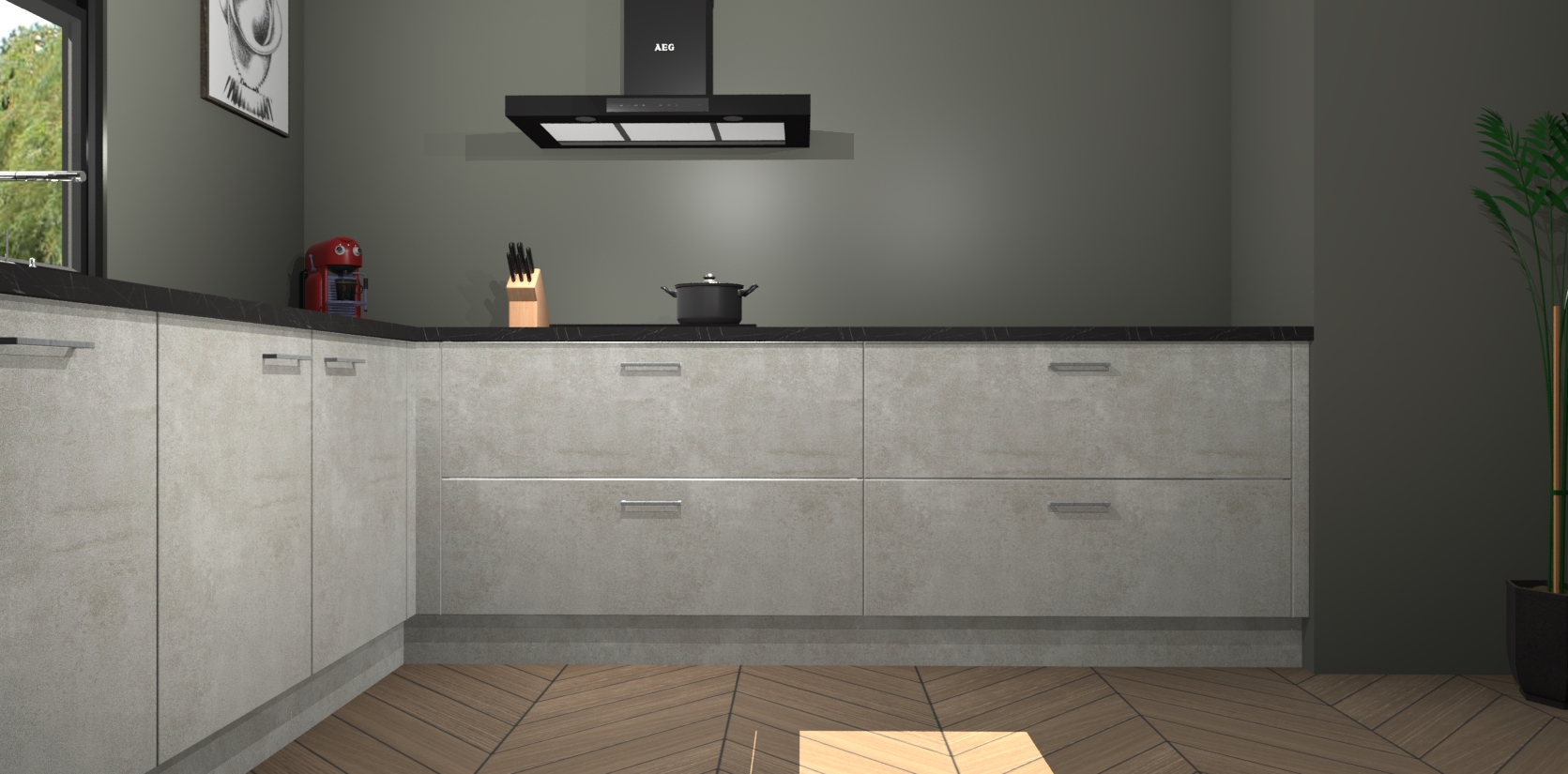 Welkom bij de Beton opaal keuken Lublin. Deze prachtige keuken zal de komende jaren het middelpunt van de belangstelling in uw huis zijn. Uitgerust met vijf inbouwapparaten komt u nooit kookgereedschap tekort. Bovendien geeft de warme houtlook elke ruimte een uitnodigende en tijdloze uitstraling.
