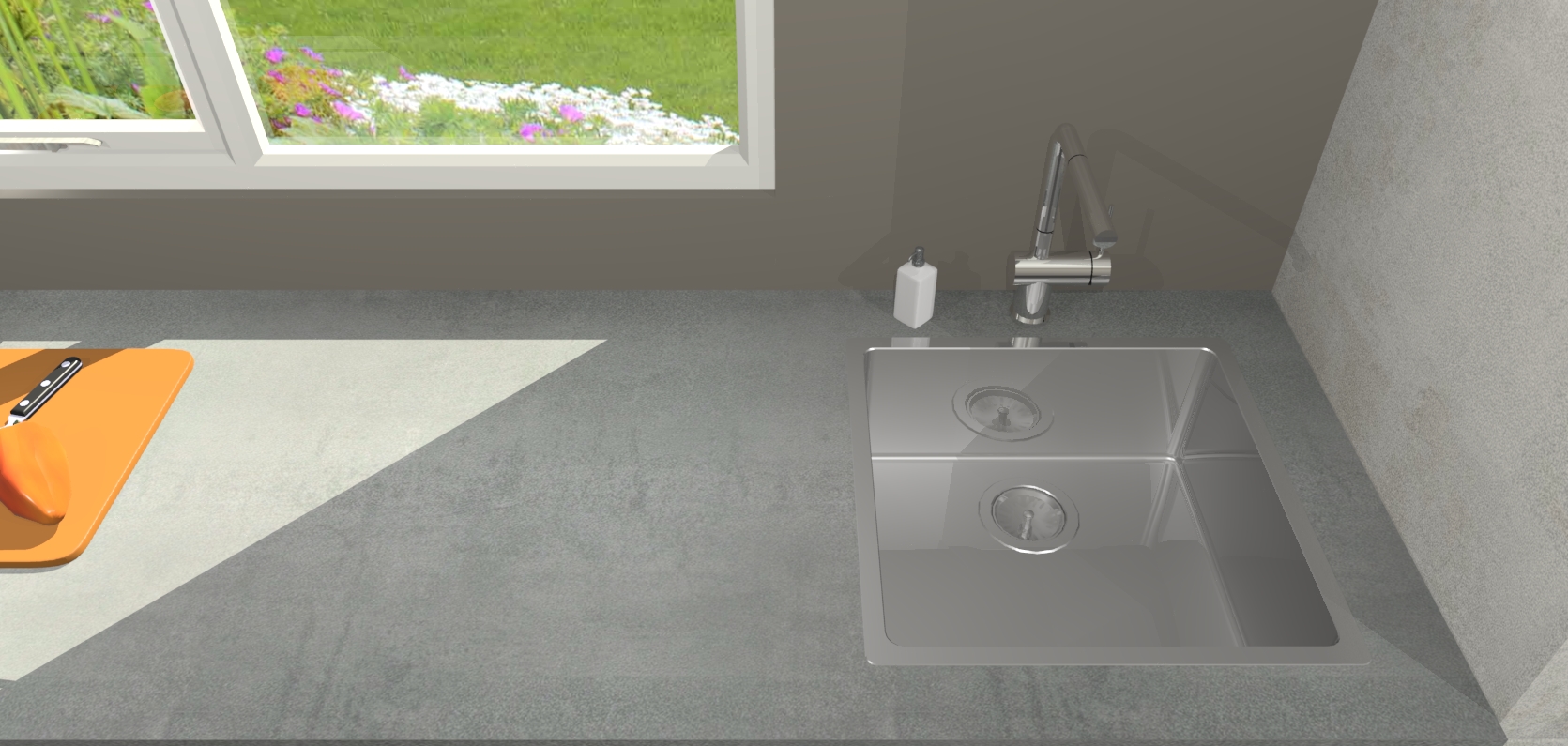 - De spoelbak is nog niet in gevreesd. Dit dient tijdens het werk gedaan te worden