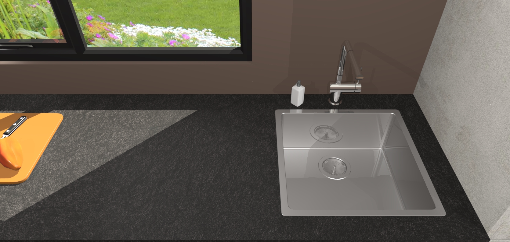 - De spoelbak is nog niet in gevreesd. Dit dient tijdens het werk gedaan te worden