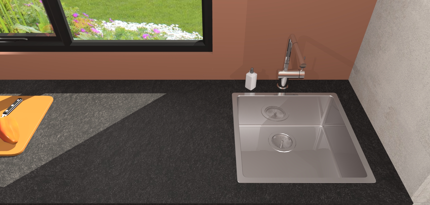 - De spoelbak is nog niet in gevreesd. Dit dient tijdens het werk gedaan te worden