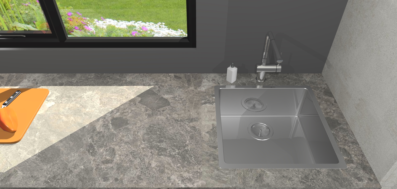 - De spoelbak is nog niet in gevreesd. Dit dient tijdens het werk gedaan te worden