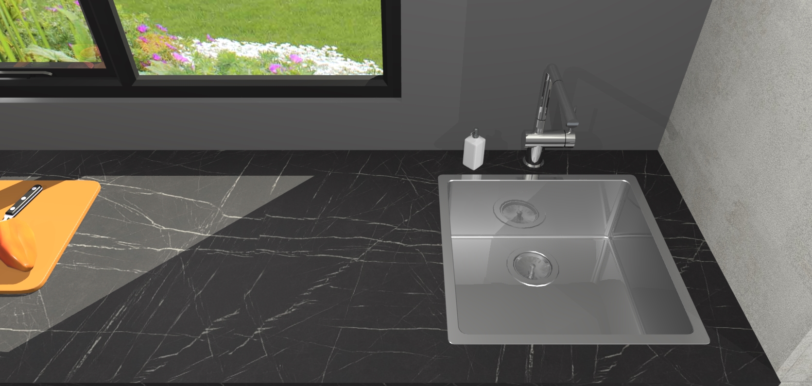- De spoelbak is nog niet in gevreesd. Dit dient tijdens het werk gedaan te worden