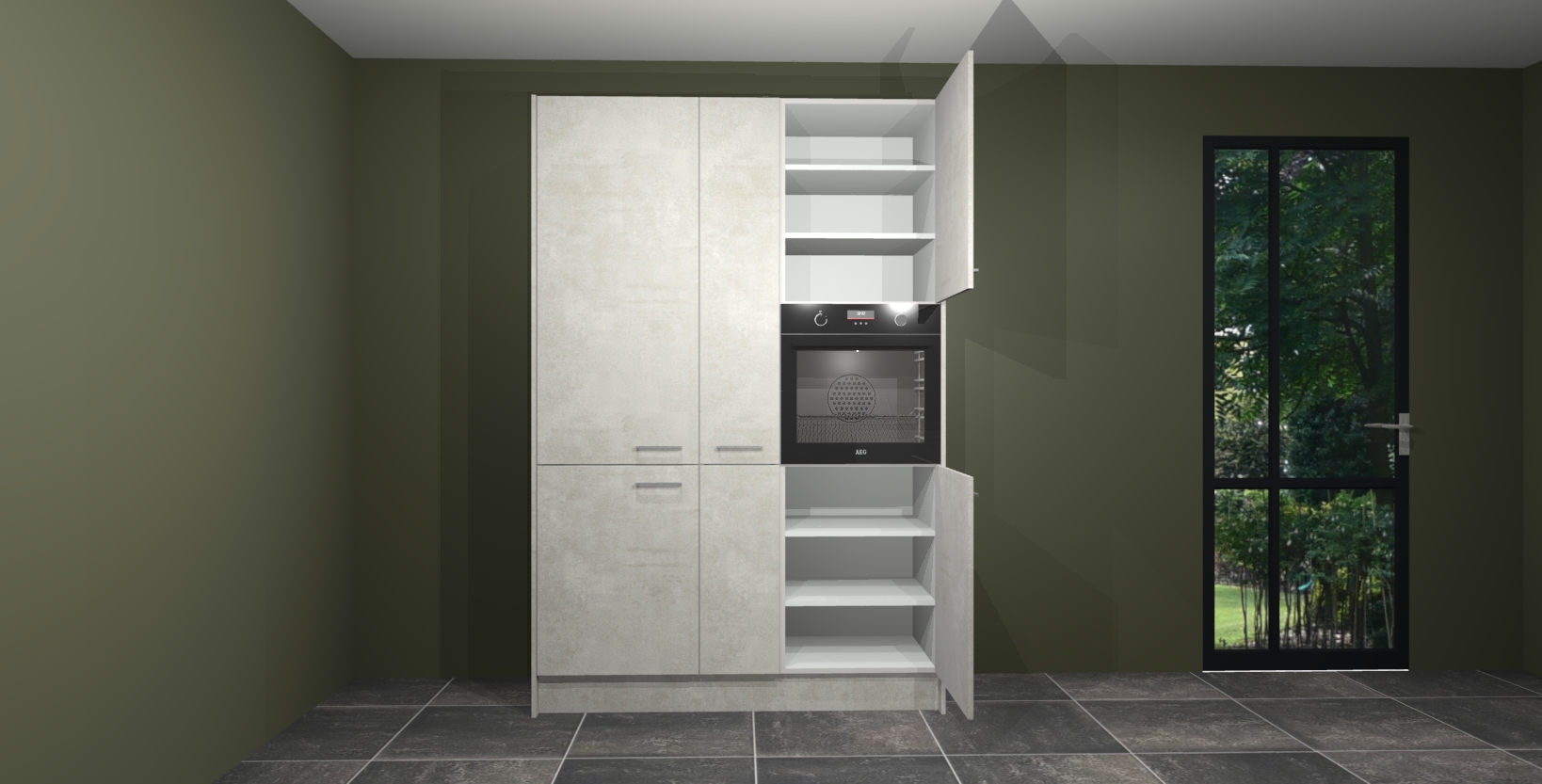 Met een modern, tijdloos design en ruime opslagruimte, zult u zich in no-time thuis voelen in uw nieuwe keuken. Uw leven wordt eenvoudiger met de soft-close deuren die voor het ultieme stille comfort zorgen - geen geluid dat u stoort terwijl u kookt. Ook is de keuken voorzien van 5 ingebouwde apparaten: een oven, inductie kookplaat, afzuigkap, vaatwasser en koelkast. Deze kunnen gemakkelijk na bestelling worden bijgewerkt naar AEG - waardoor uw luxe ervaring compleet is.
