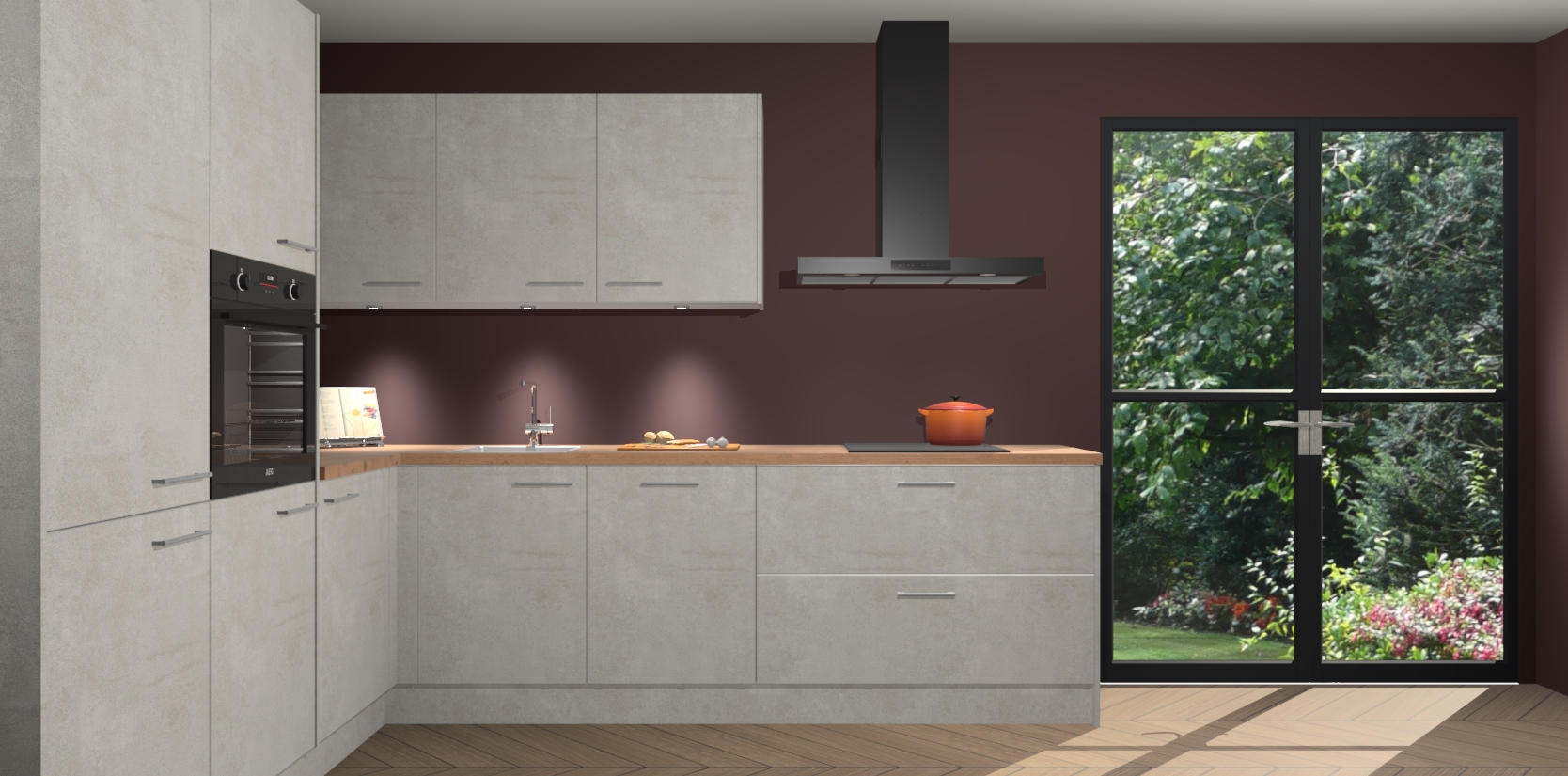 Maak kennis met de beton opaal keuken Parla - de perfecte aanvulling voor uw moderne keuken! Ervaar tijdloos design, elegantie en een chique uitstraling met onze zwarte handgrepen, soft-close deuren en veel opbergruimte. Dit alles wordt aangeboden tegen een vaste lage prijs voor ongeëvenaarde Duitse keukenkwaliteit!