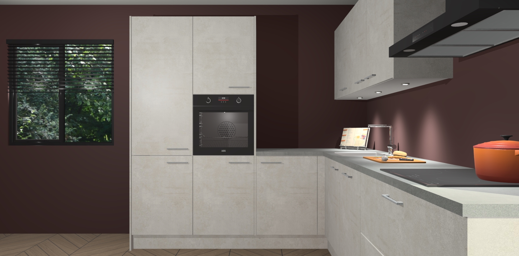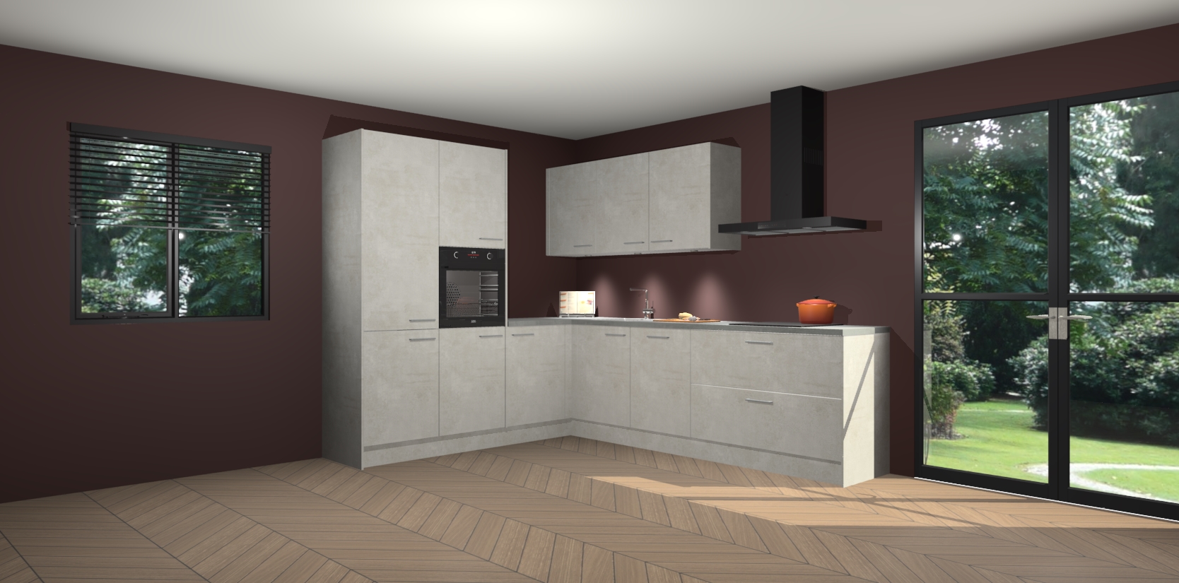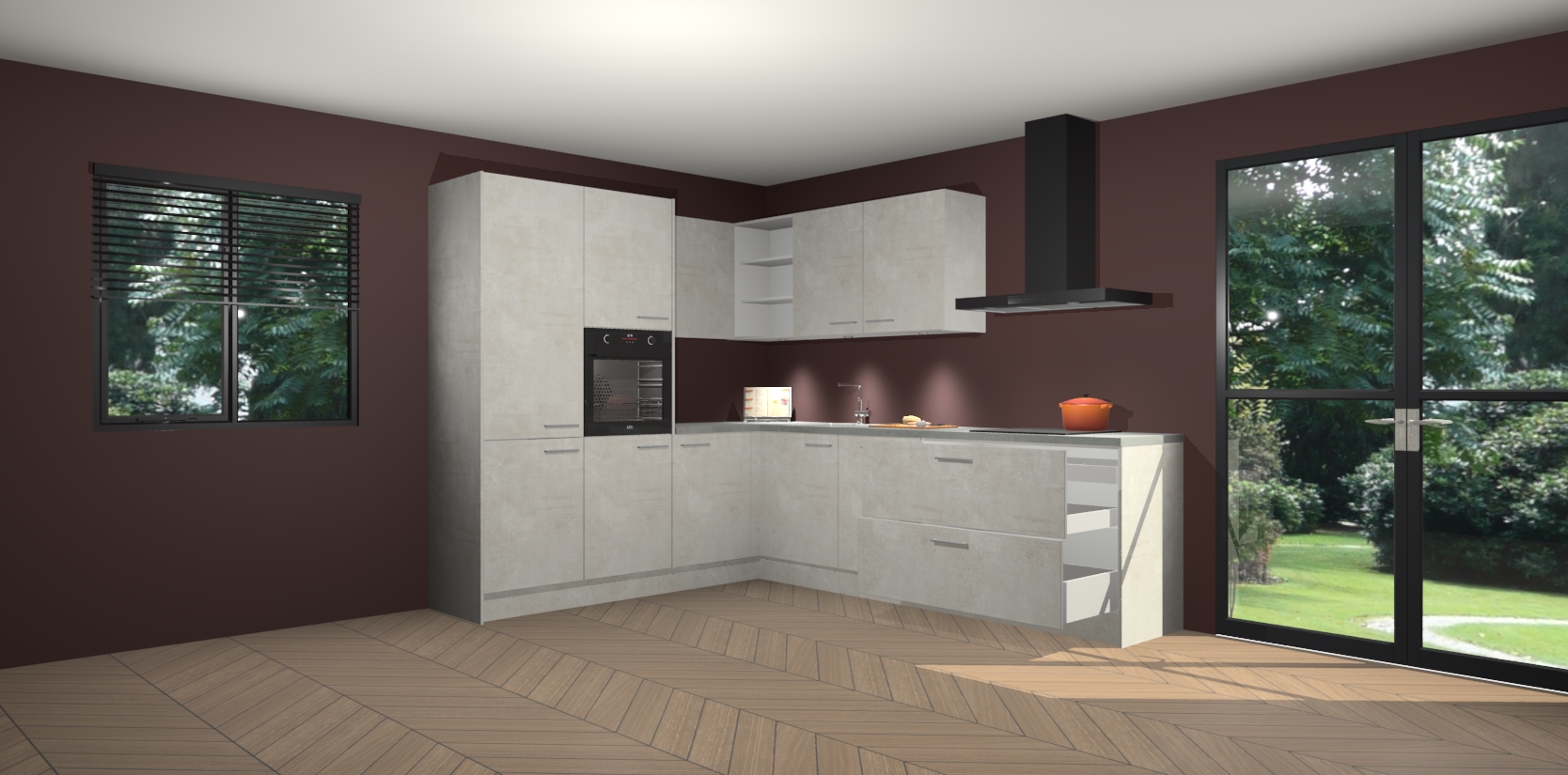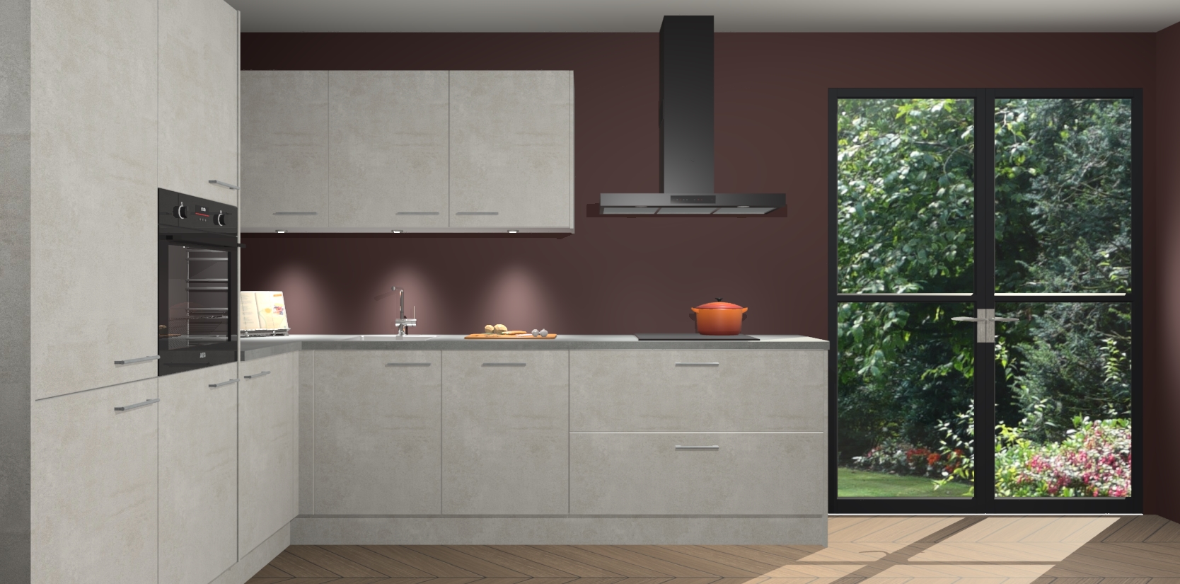 Maak kennis met de beton opaal keuken Parla - de perfecte aanvulling voor uw moderne keuken! Ervaar tijdloos design, elegantie en een chique uitstraling met onze zwarte handgrepen, soft-close deuren en veel opbergruimte. Dit alles wordt aangeboden tegen een vaste lage prijs voor ongeëvenaarde Duitse keukenkwaliteit!