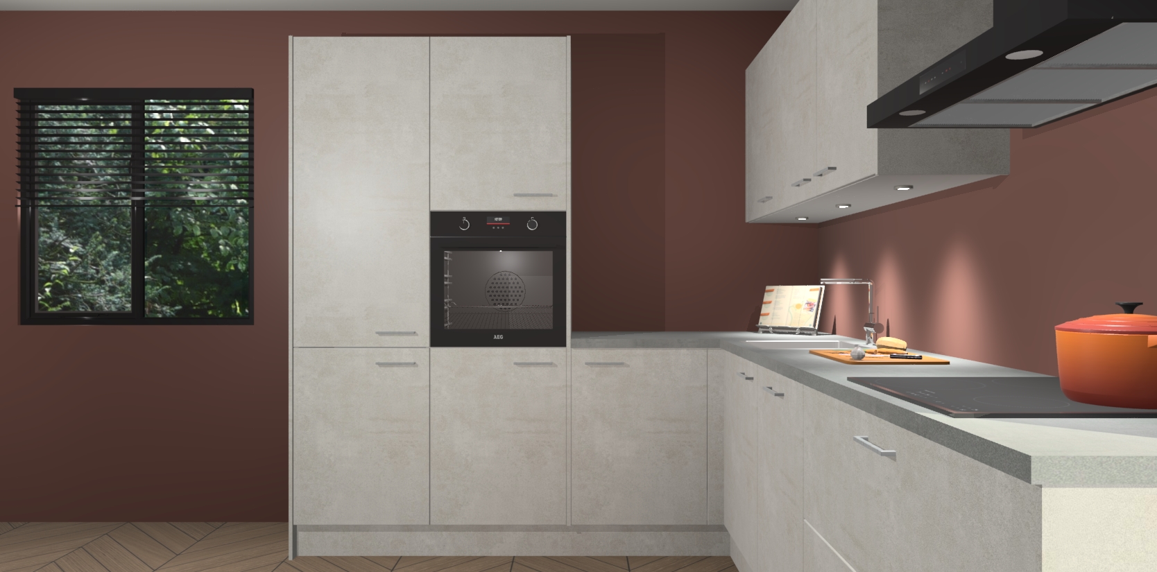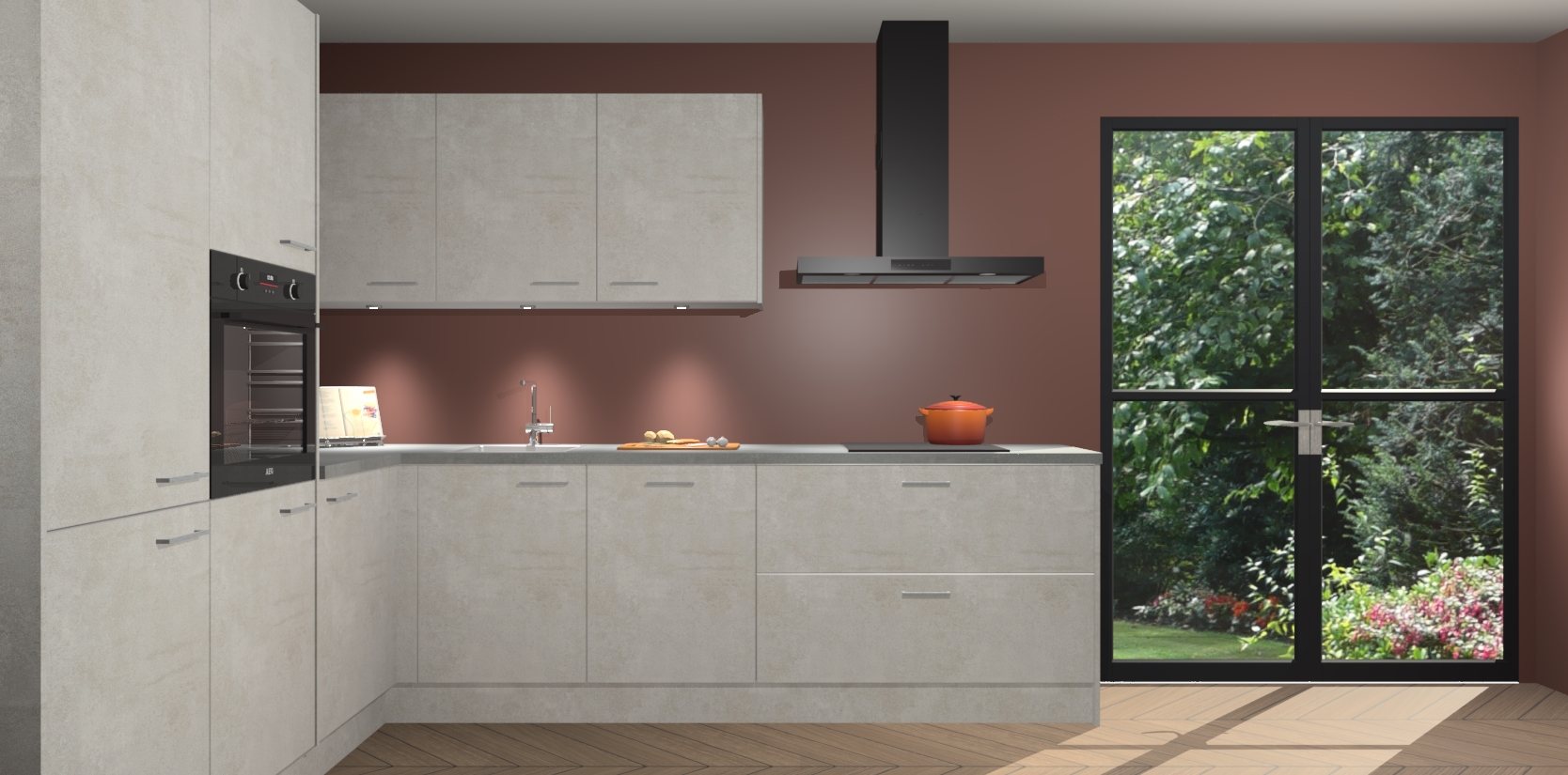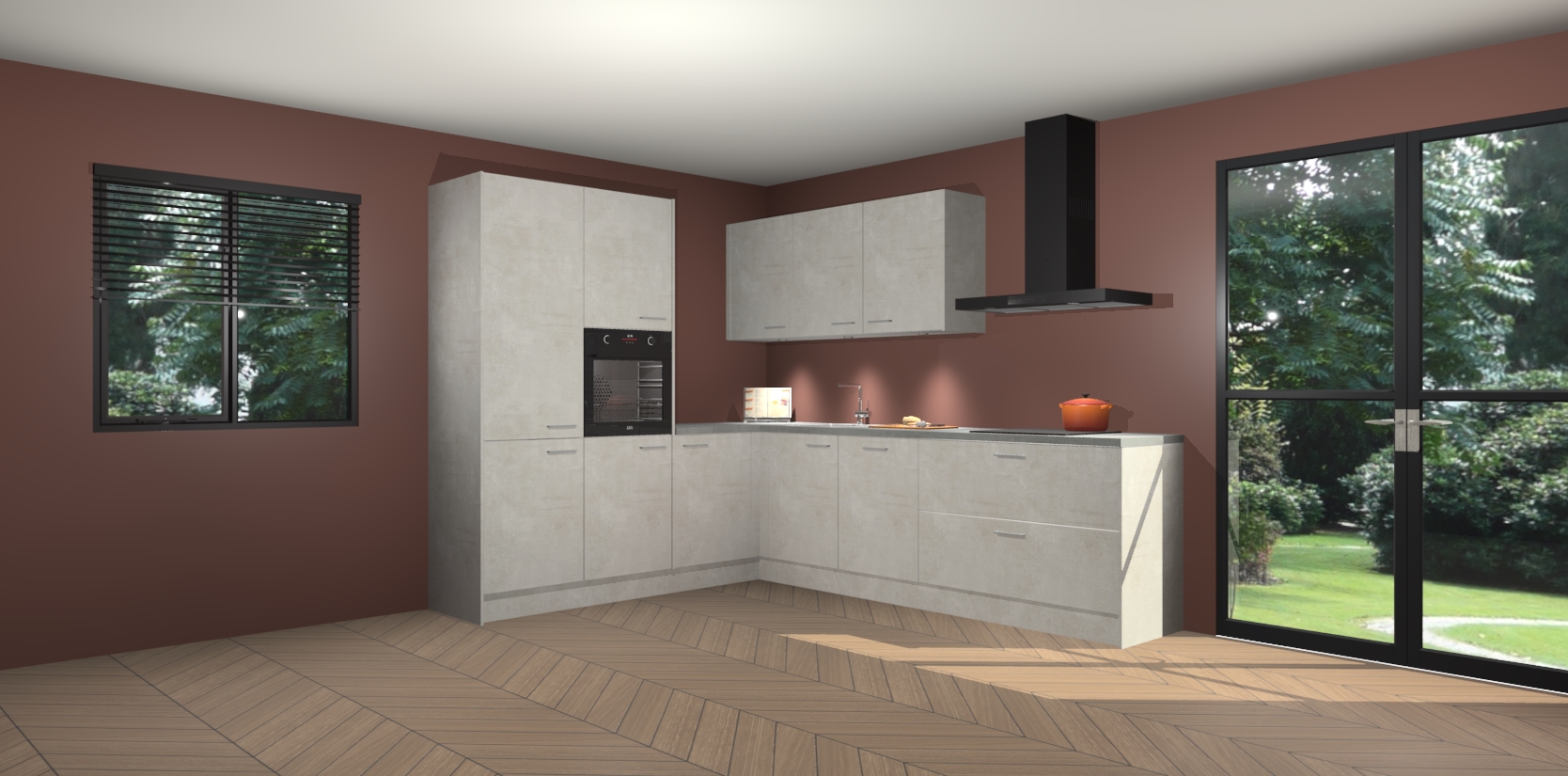 Maak kennis met de beton opaal keuken Parla - de perfecte aanvulling voor uw moderne keuken! Ervaar tijdloos design, elegantie en een chique uitstraling met onze zwarte handgrepen, soft-close deuren en veel opbergruimte. Dit alles wordt aangeboden tegen een vaste lage prijs voor ongeëvenaarde Duitse keukenkwaliteit!