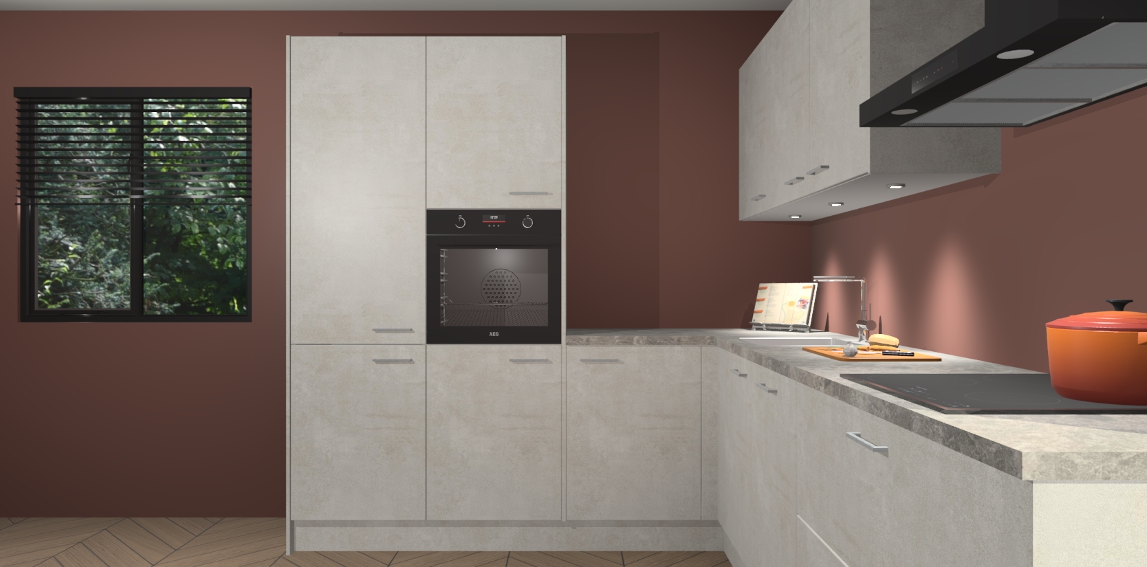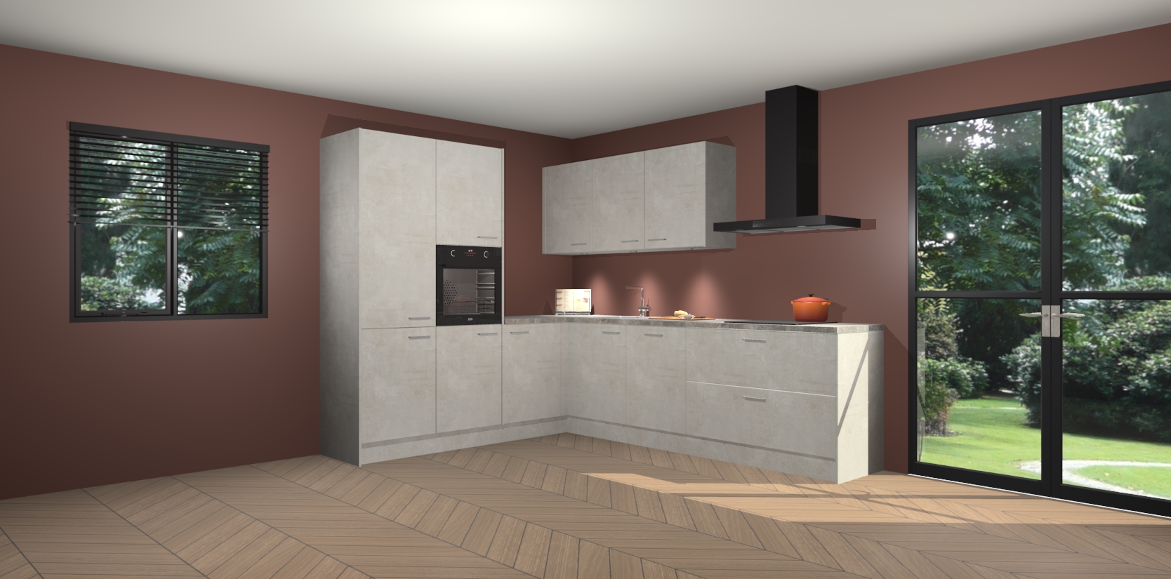 Maak kennis met de beton opaal keuken Parla - de perfecte aanvulling voor uw moderne keuken! Ervaar tijdloos design, elegantie en een chique uitstraling met onze zwarte handgrepen, soft-close deuren en veel opbergruimte. Dit alles wordt aangeboden tegen een vaste lage prijs voor ongeëvenaarde Duitse keukenkwaliteit!