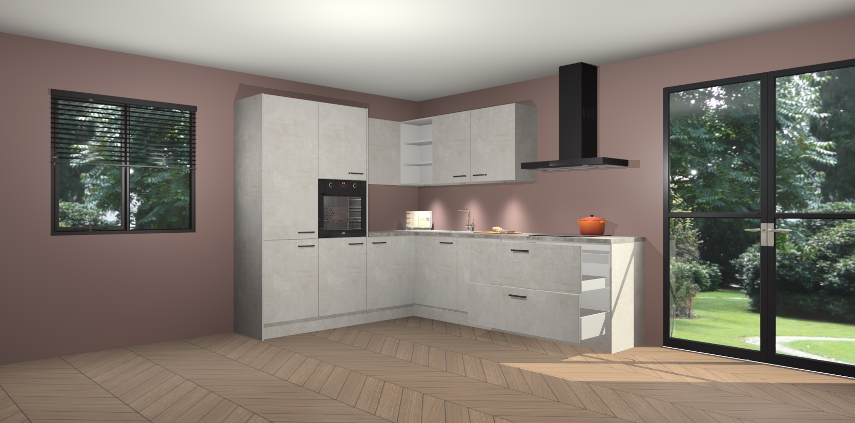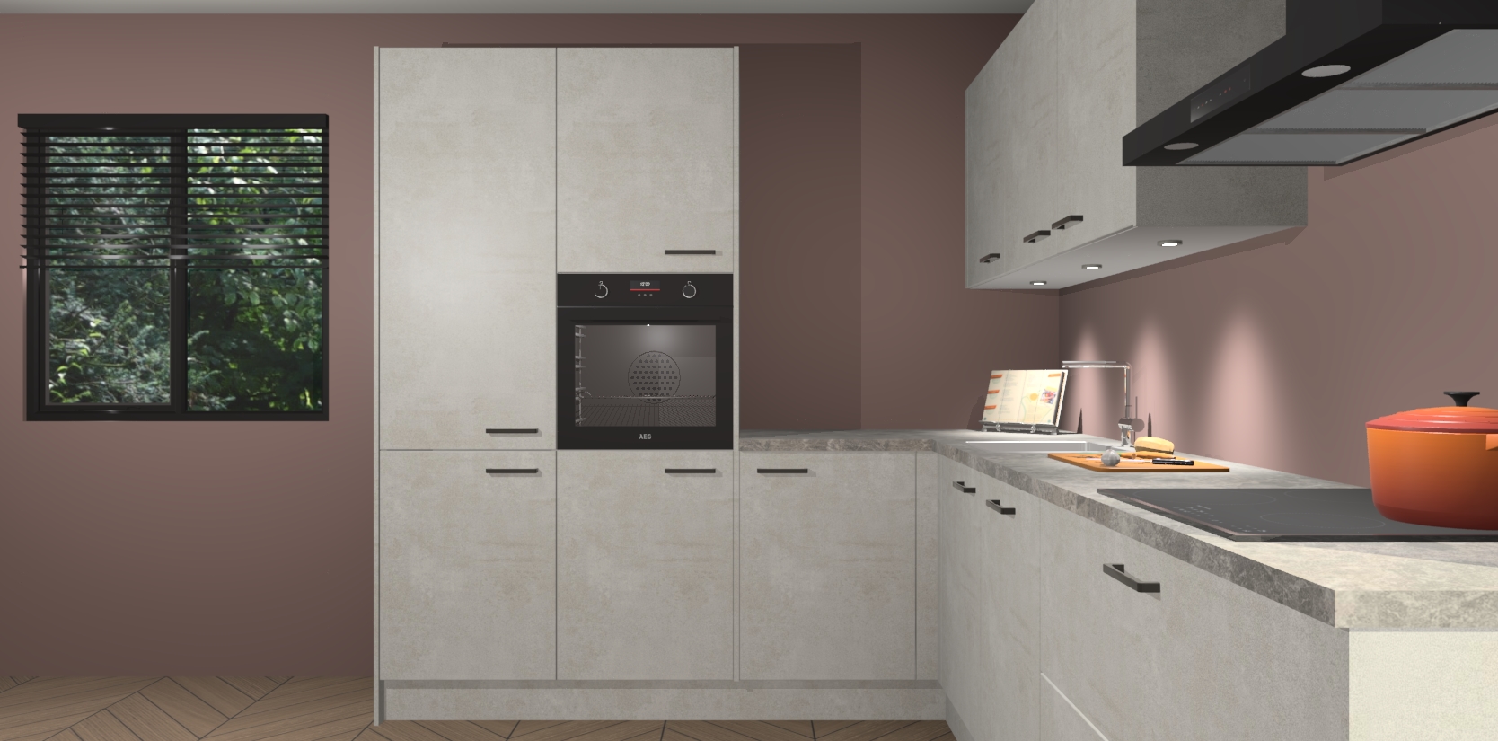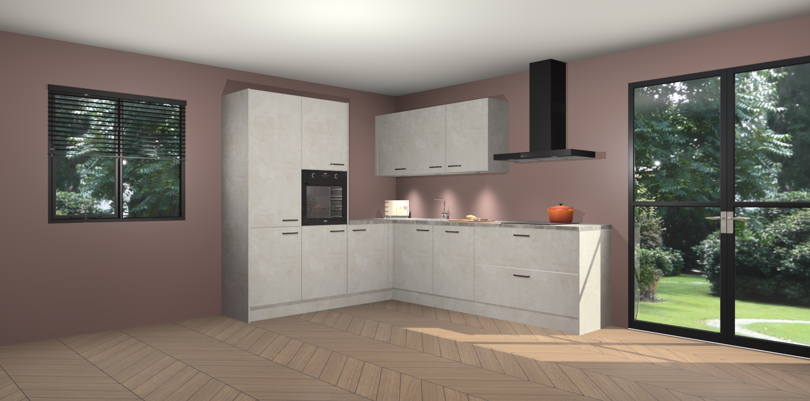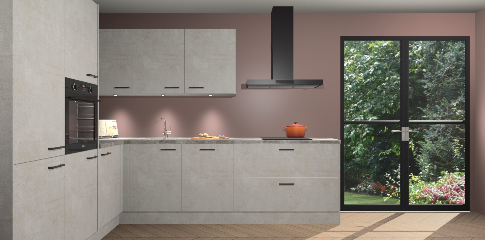Maak kennis met de beton opaal keuken Parla - de perfecte aanvulling voor uw moderne keuken! Ervaar tijdloos design, elegantie en een chique uitstraling met onze zwarte handgrepen, soft-close deuren en veel opbergruimte. Dit alles wordt aangeboden tegen een vaste lage prijs voor ongeëvenaarde Duitse keukenkwaliteit!