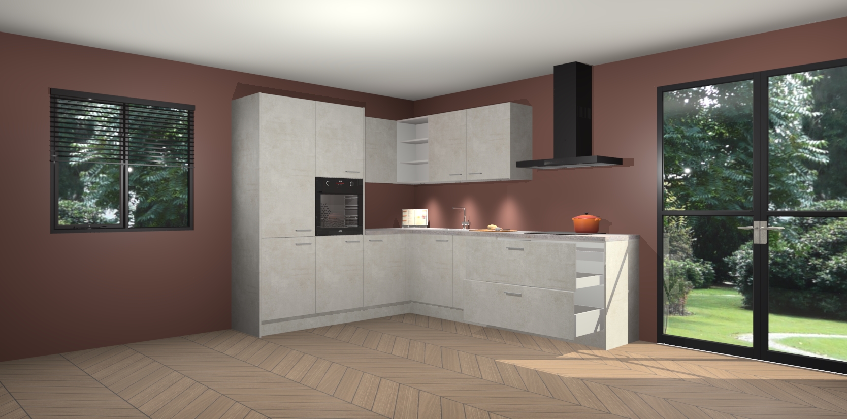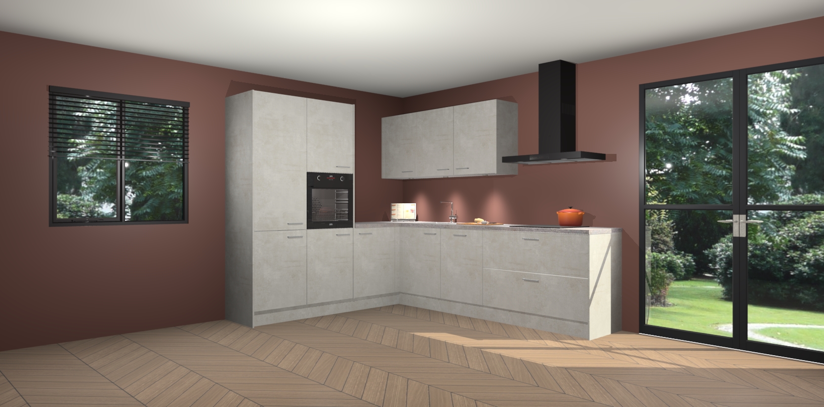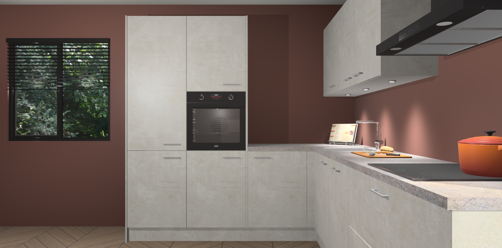 Maak kennis met de beton opaal keuken Parla - de perfecte aanvulling voor uw moderne keuken! Ervaar tijdloos design, elegantie en een chique uitstraling met onze zwarte handgrepen, soft-close deuren en veel opbergruimte. Dit alles wordt aangeboden tegen een vaste lage prijs voor ongeëvenaarde Duitse keukenkwaliteit!