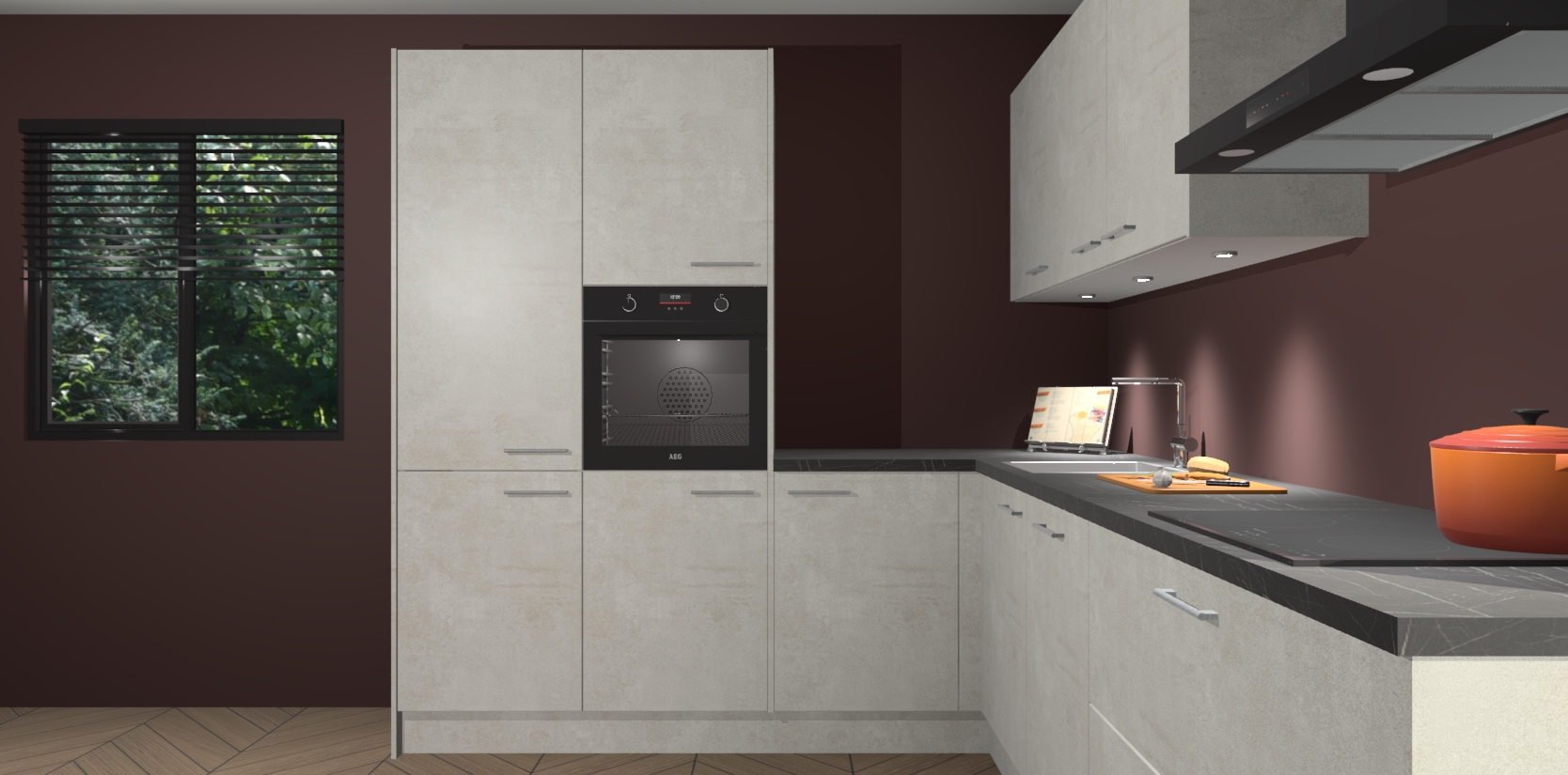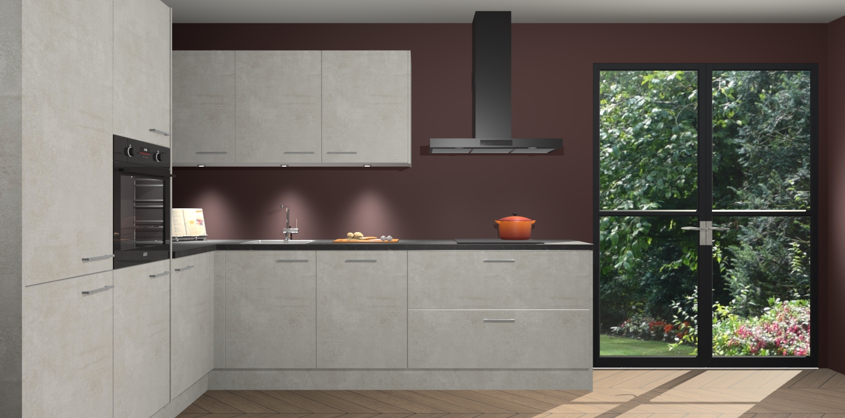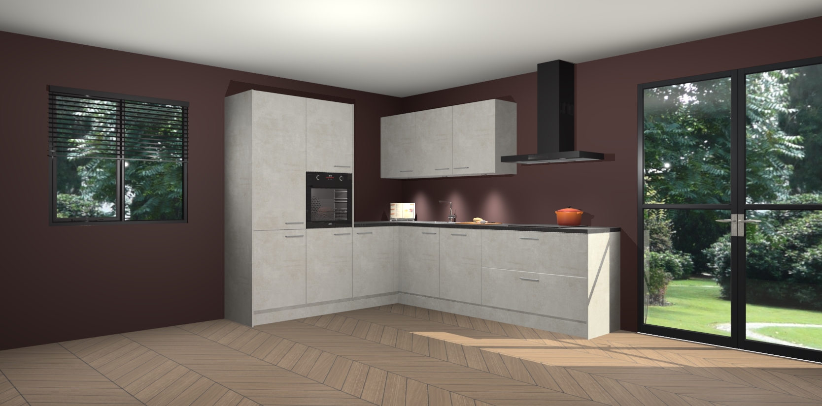 Maak kennis met de beton opaal keuken Parla - de perfecte aanvulling voor uw moderne keuken! Ervaar tijdloos design, elegantie en een chique uitstraling met onze zwarte handgrepen, soft-close deuren en veel opbergruimte. Dit alles wordt aangeboden tegen een vaste lage prijs voor ongeëvenaarde Duitse keukenkwaliteit!