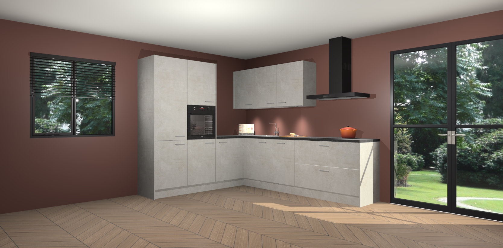 Maak kennis met de beton opaal keuken Parla - de perfecte aanvulling voor uw moderne keuken! Ervaar tijdloos design, elegantie en een chique uitstraling met onze zwarte handgrepen, soft-close deuren en veel opbergruimte. Dit alles wordt aangeboden tegen een vaste lage prijs voor ongeëvenaarde Duitse keukenkwaliteit!