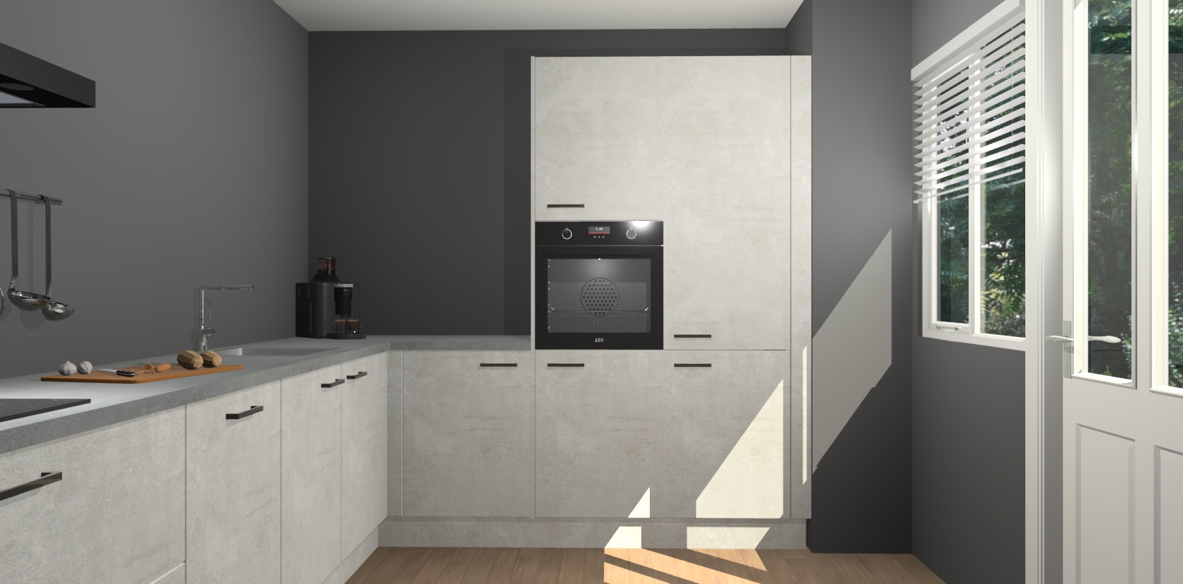 Welkom bij de Beton Opaal keuken Portland. Deze prachtige keuken zal de komende jaren het middelpunt van de belangstelling in uw huis zijn. Uitgerust met vijf inbouwapparaten komt u nooit kookgereedschap tekort. Bovendien geeft de warme houtlook elke ruimte een uitnodigende en tijdloze uitstraling.