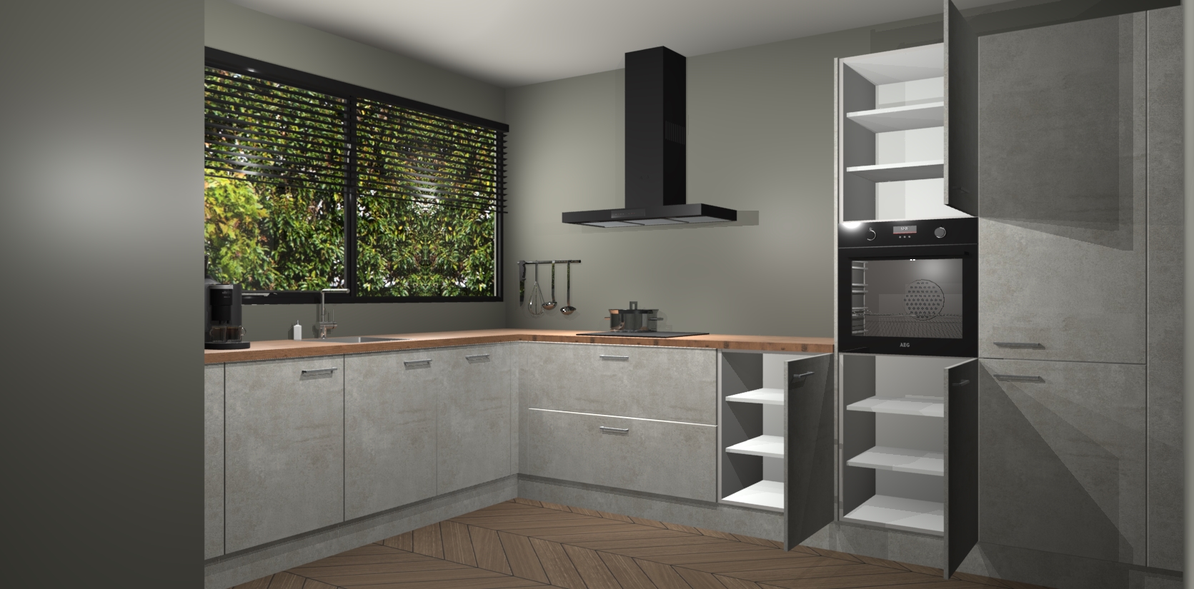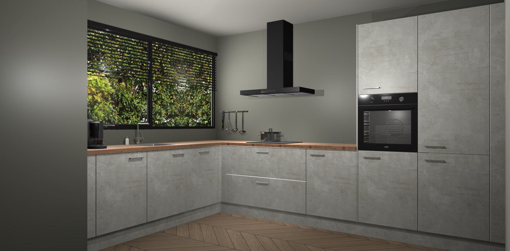 Met een modern, tijdloos design en ruime opslagruimte, zult u zich in no-time thuis voelen in uw nieuwe keuken. Uw leven wordt eenvoudiger met de soft-close deuren die voor het ultieme stille comfort zorgen - geen geluid dat u stoort terwijl u kookt. Ook is de keuken voorzien van 5 ingebouwde apparaten: een oven, inductie kookplaat, afzuigkap, vaatwasser en koelkast. Deze kunnen gemakkelijk na bestelling worden bijgewerkt naar AEG - waardoor uw luxe ervaring compleet is.