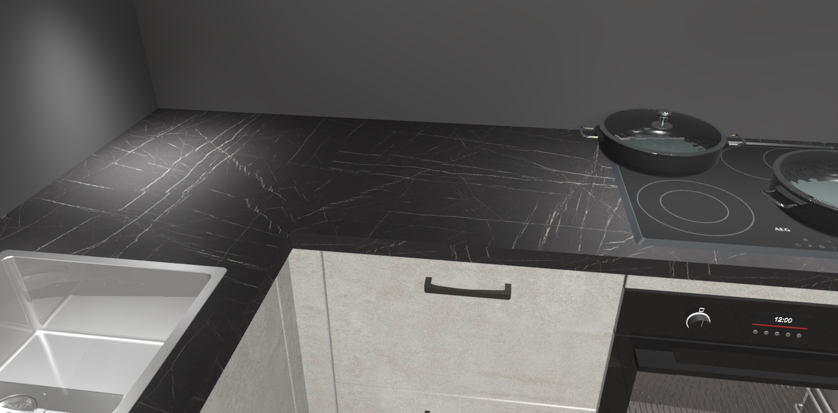 • Bij een hoekwerkblad zijn de hoeken in gevreesd en op maat gemaakt