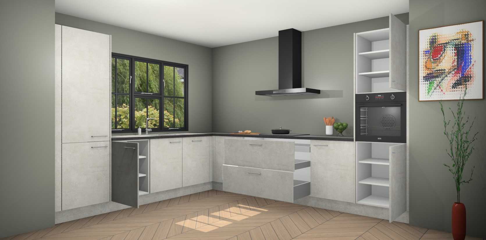 In deze box zijn alle kleuren verzameld van de deuren en werkbladen. Vraag de gratis kleurenbox aan en kijk thuis rustig verder!