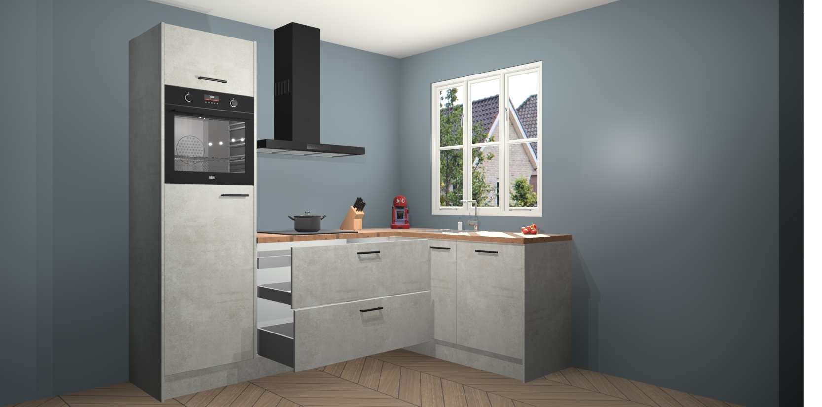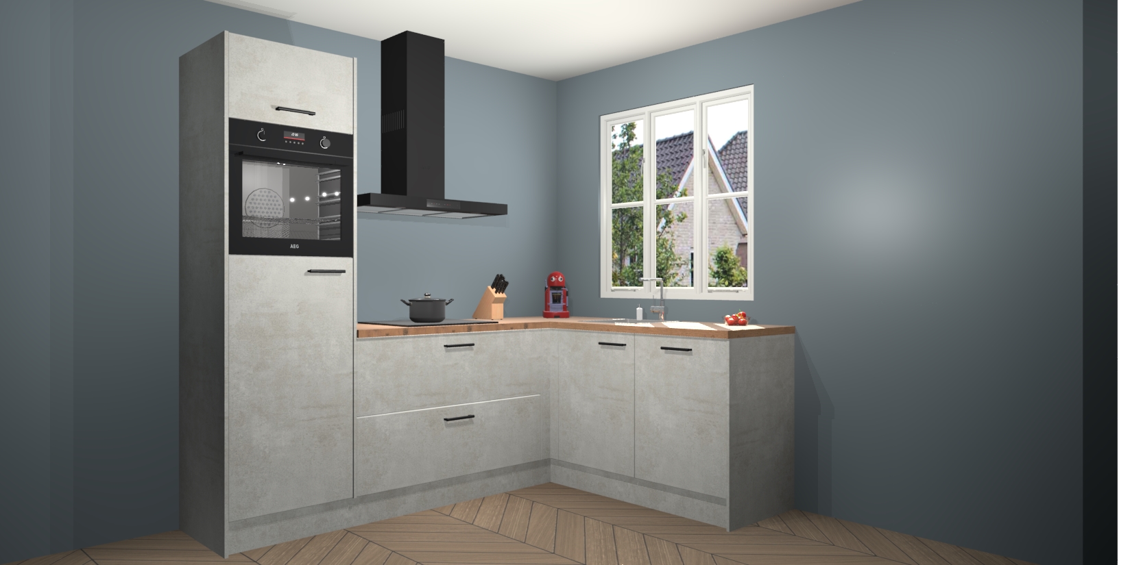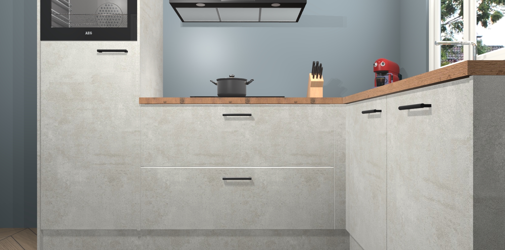 Dit model biedt u voldoende opbergruimte en vijf ingebouwde apparaten: een oven, inductiekookplaat, afzuigkap, vaatwasser en koelkast. Deze apparaten kunnen gemakkelijk worden geüpgrade naar AEG nadat u besteld heeft. De verschillende laden en kastjes bevatten softclose-deuren waardoor ze gezellig dichtvallen met een geruststellend helemaal geruisloos geluid. En dat is nog niet alles! We garanderen ook dat de prijs altijd laag blijft - dus haal nu uw Beton opaal keuken Victoria terwijl het kan.