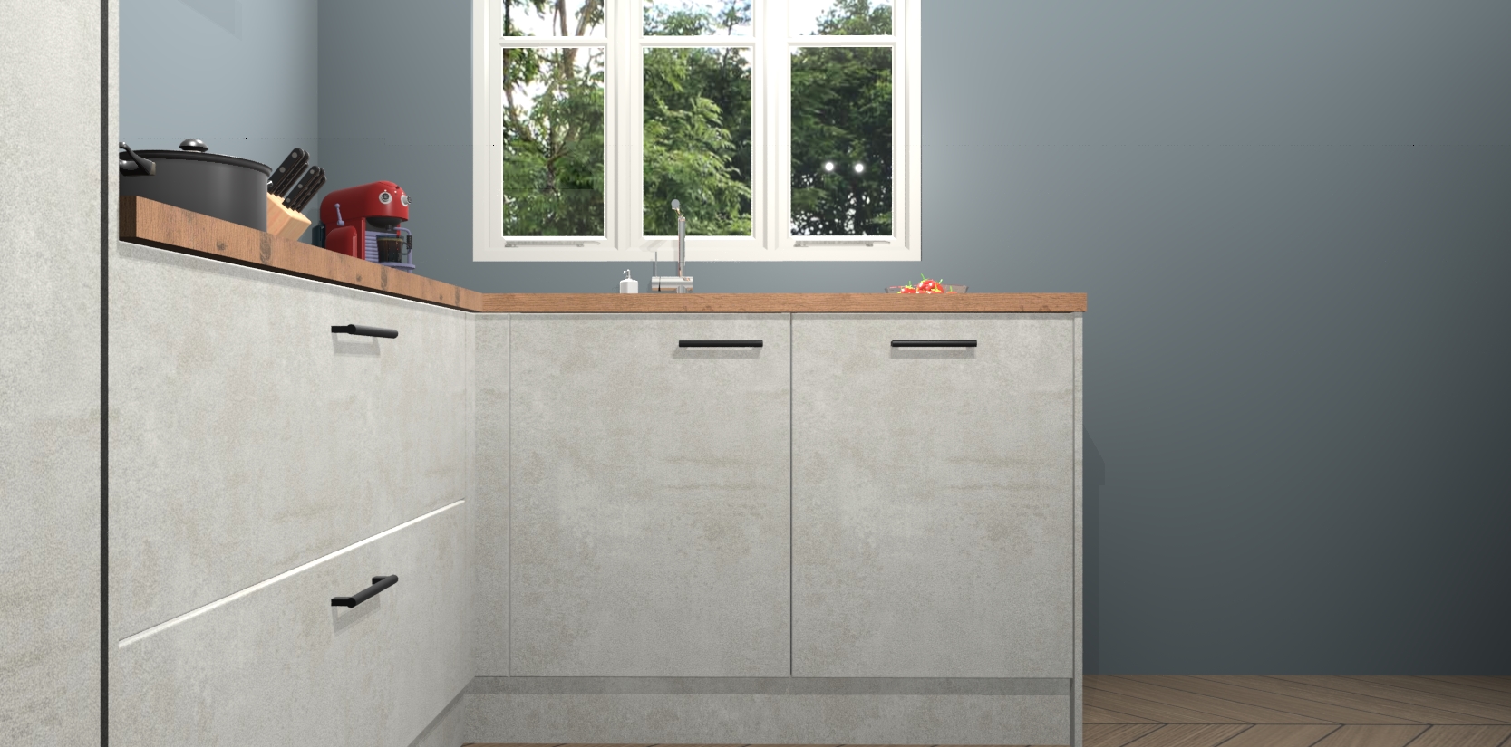 Bestellen was nog nooit zo makkelijk en we leveren met slechts 7 weken; zodra de keuken arriveert staan de kasten voor gemonteerd klaar om er alles aan te doen dat u hem gemakkelijk zelf kunt installeren! Eén ding is zeker: met de Beton opaal keuken Victoria slaagt u erin modischer, modernere keukens uit te rusten die tientallen jaren meegaan! Haal snel uw Beton opaal keuken Victoria - of u nu net begint of al 'levenservaring' hebt in de keukendroomloopbaan - want dit topmodel van onze collectie wilt u absoluut niet missen.