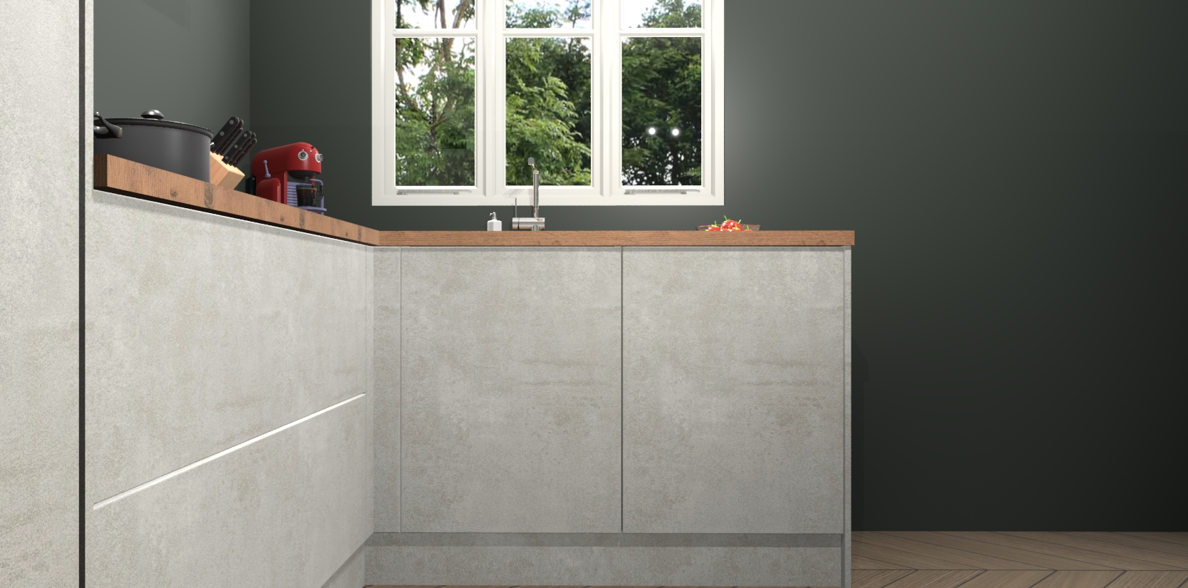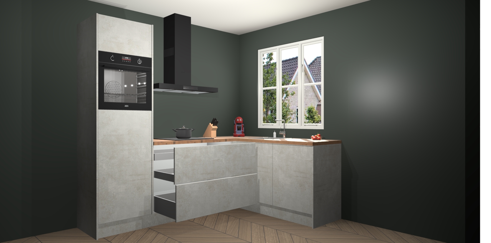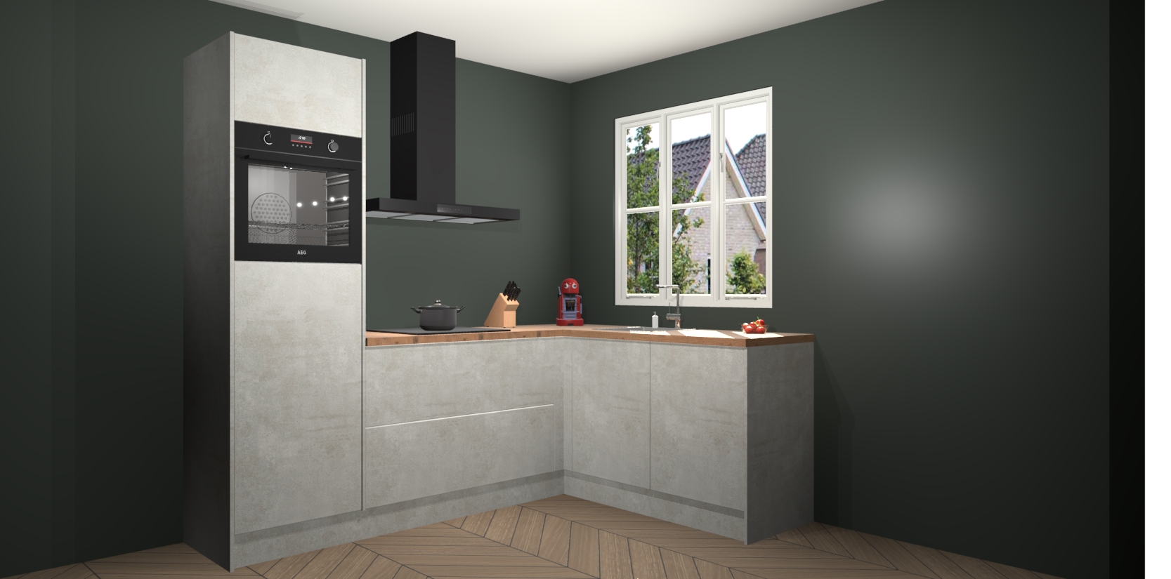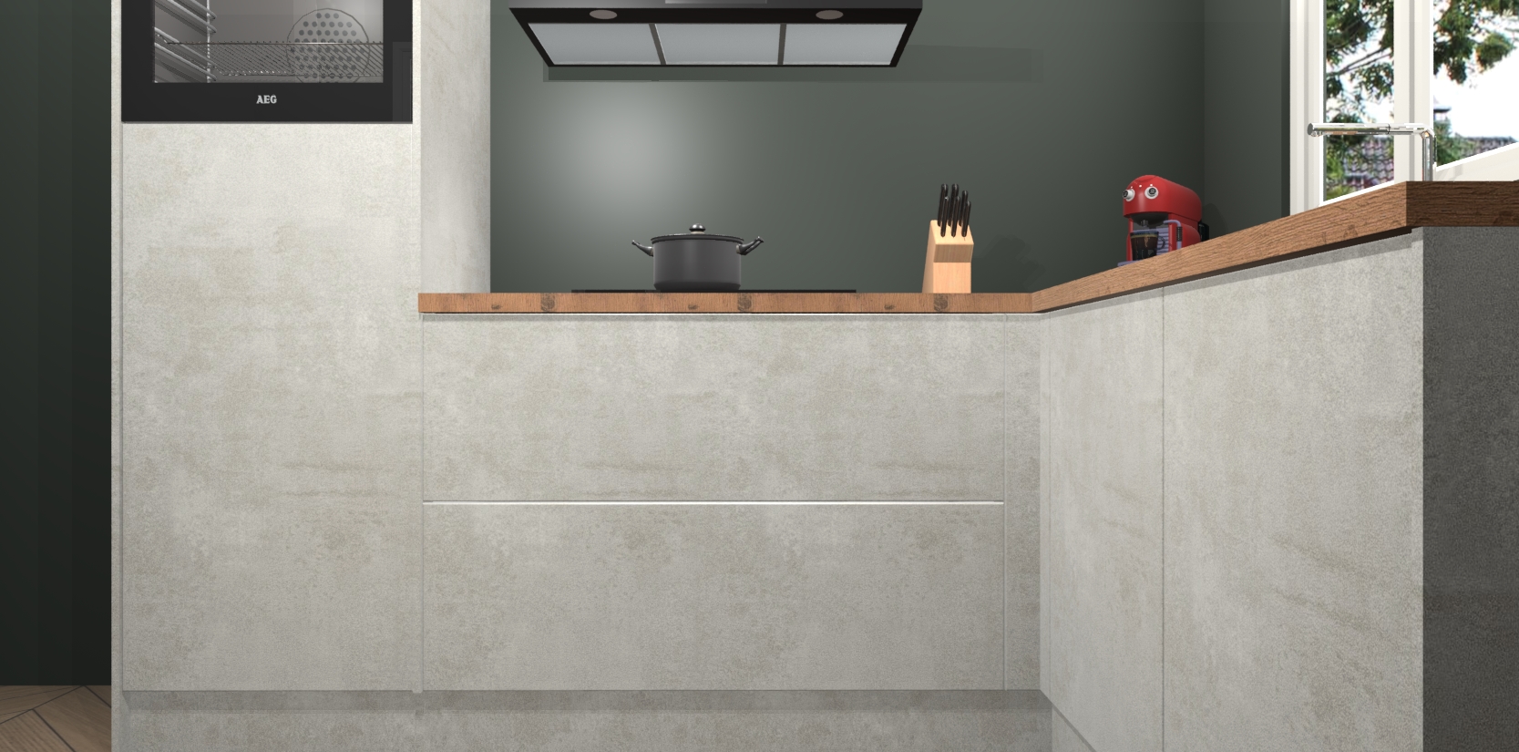 Dit model biedt u voldoende opbergruimte en vijf ingebouwde apparaten: een oven, inductiekookplaat, afzuigkap, vaatwasser en koelkast. Deze apparaten kunnen gemakkelijk worden geüpgrade naar AEG nadat u besteld heeft. De verschillende laden en kastjes bevatten softclose-deuren waardoor ze gezellig dichtvallen met een geruststellend helemaal geruisloos geluid. En dat is nog niet alles! We garanderen ook dat de prijs altijd laag blijft - dus haal nu uw Beton opaal keuken Victoria terwijl het kan.
