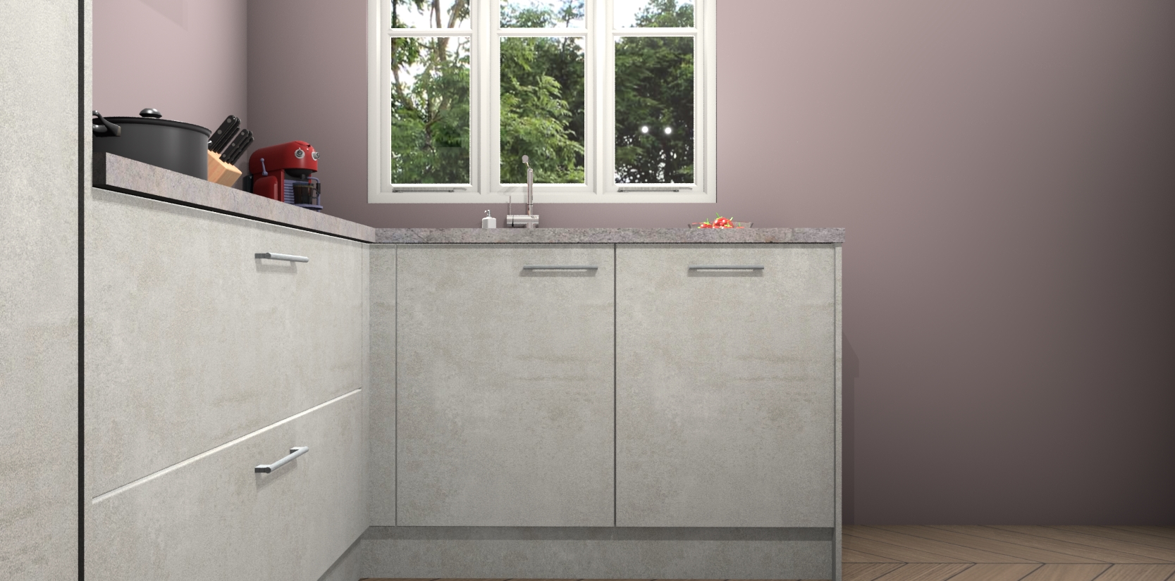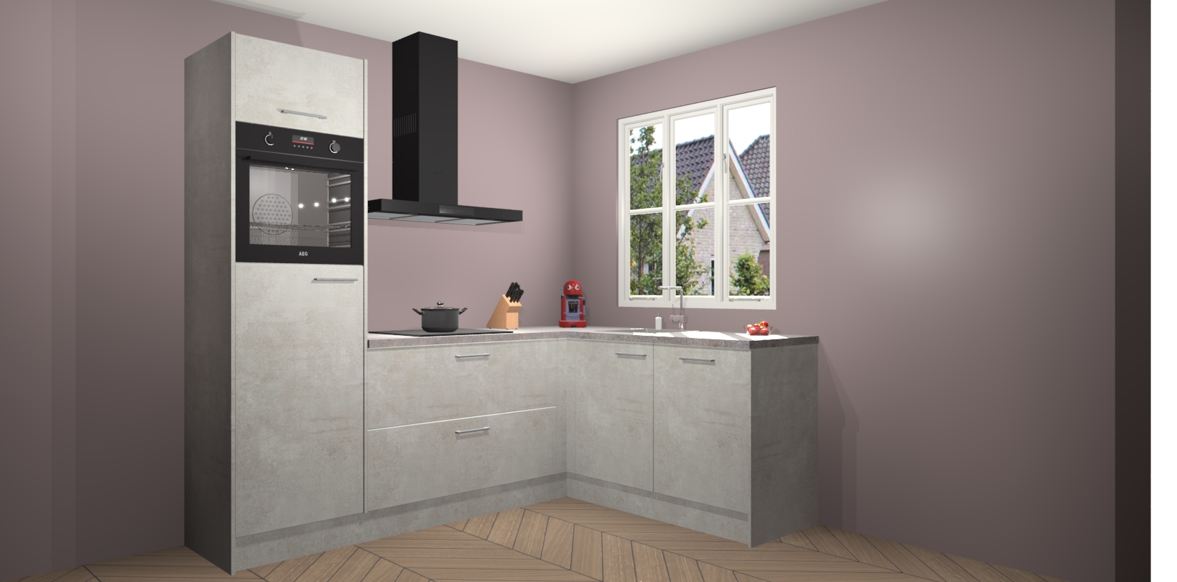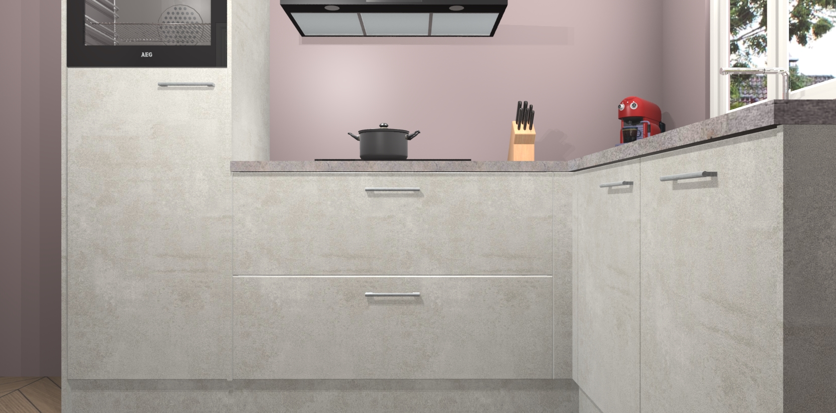 Dit model biedt u voldoende opbergruimte en vijf ingebouwde apparaten: een oven, inductiekookplaat, afzuigkap, vaatwasser en koelkast. Deze apparaten kunnen gemakkelijk worden geüpgrade naar AEG nadat u besteld heeft. De verschillende laden en kastjes bevatten softclose-deuren waardoor ze gezellig dichtvallen met een geruststellend helemaal geruisloos geluid. En dat is nog niet alles! We garanderen ook dat de prijs altijd laag blijft - dus haal nu uw Beton opaal keuken Victoria terwijl het kan.