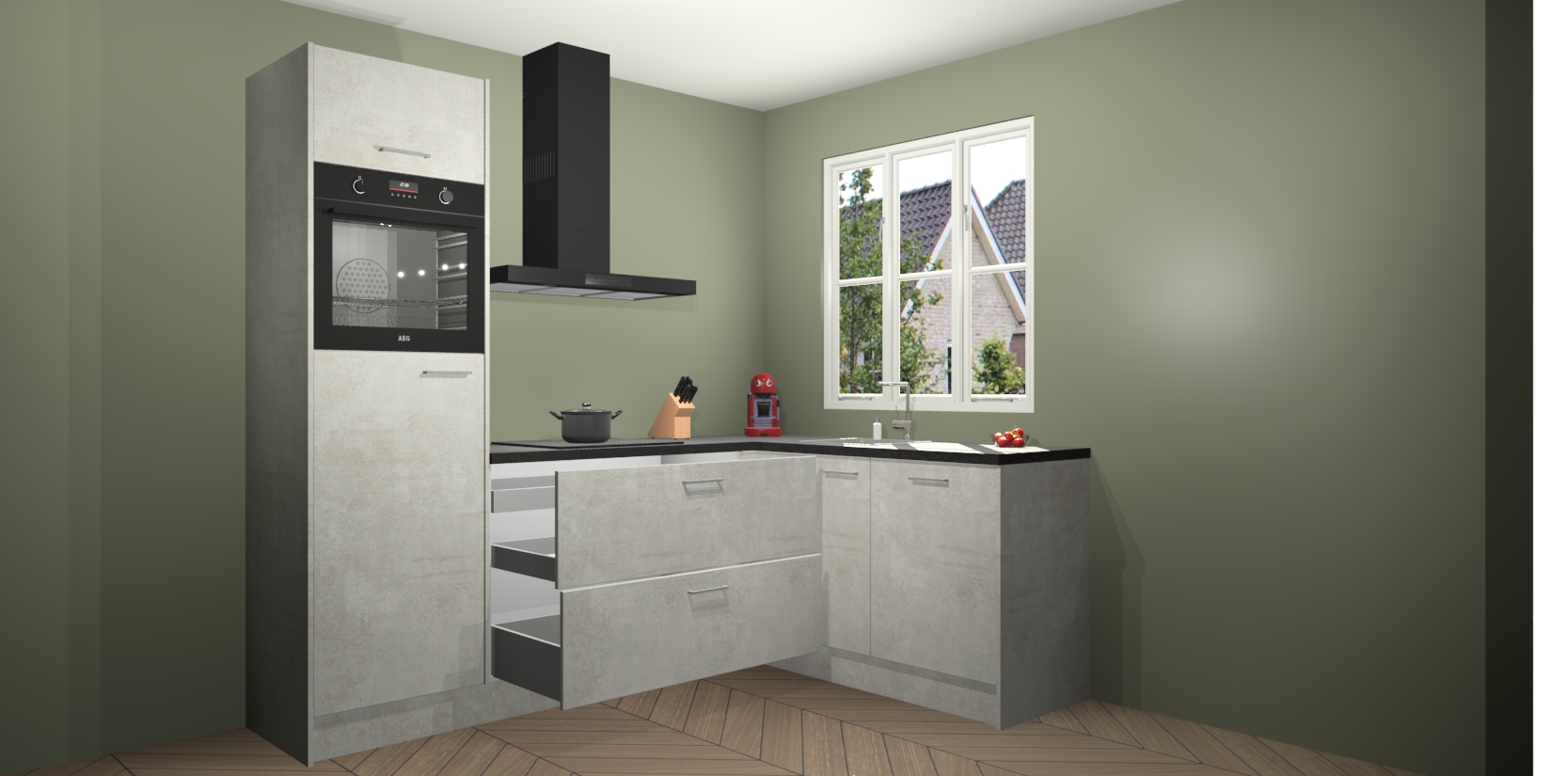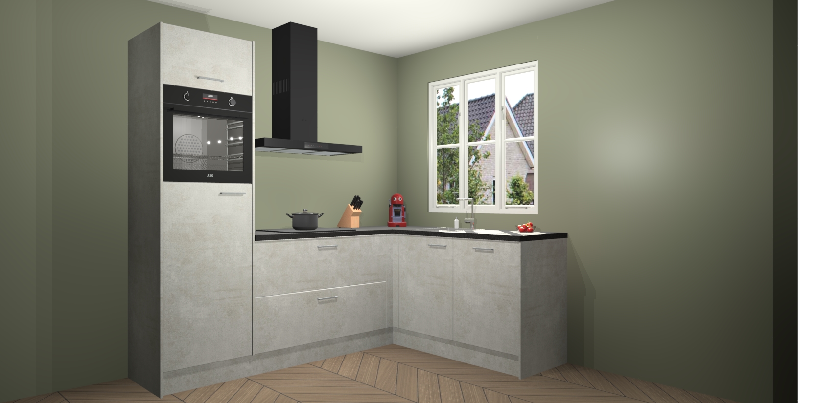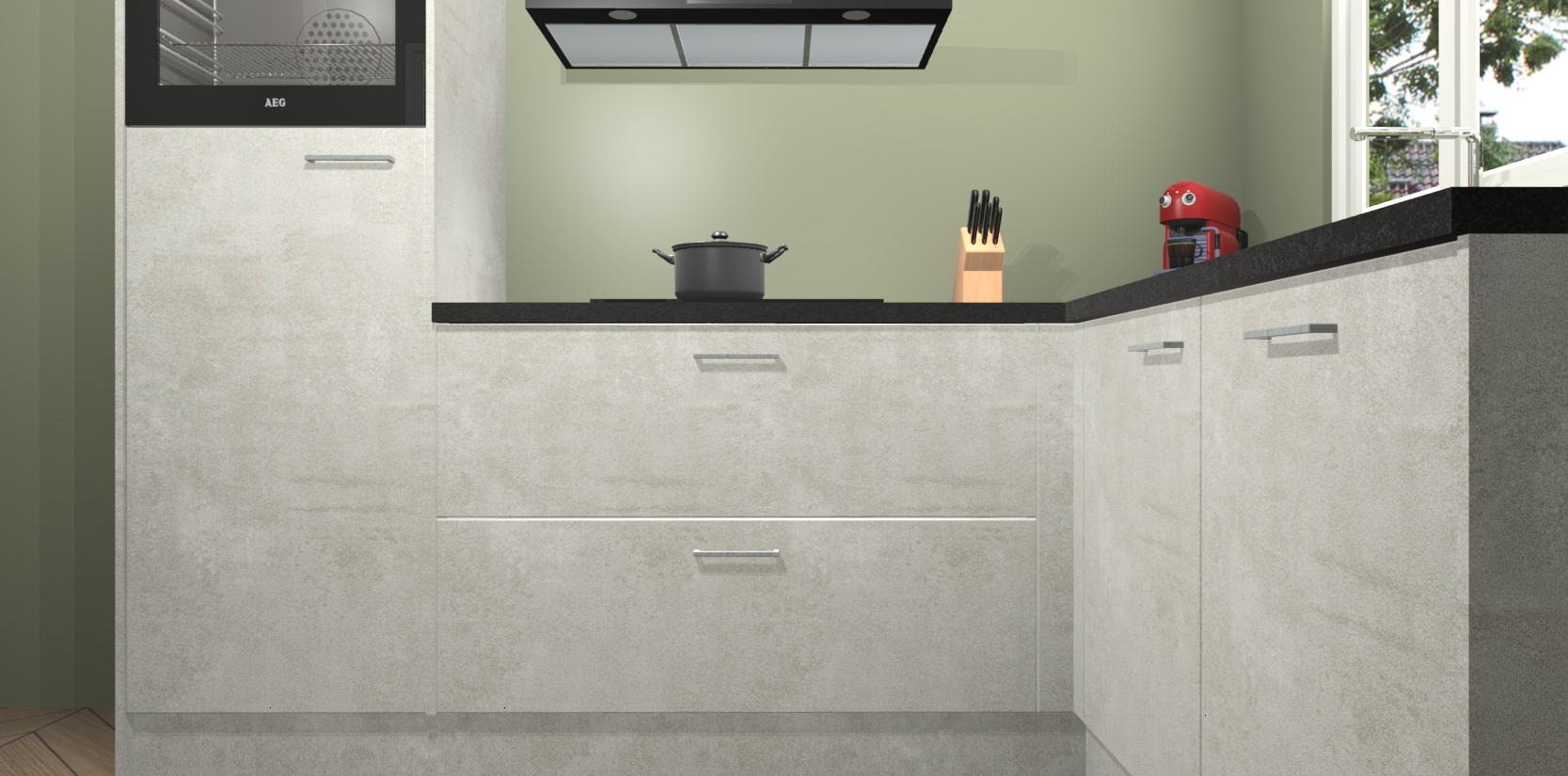 Dit model biedt u voldoende opbergruimte en vijf ingebouwde apparaten: een oven, inductiekookplaat, afzuigkap, vaatwasser en koelkast. Deze apparaten kunnen gemakkelijk worden geüpgrade naar AEG nadat u besteld heeft. De verschillende laden en kastjes bevatten softclose-deuren waardoor ze gezellig dichtvallen met een geruststellend helemaal geruisloos geluid. En dat is nog niet alles! We garanderen ook dat de prijs altijd laag blijft - dus haal nu uw Beton opaal keuken Victoria terwijl het kan.