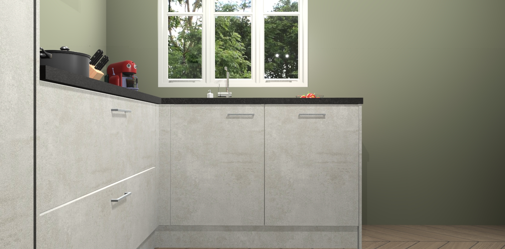 Bestellen was nog nooit zo makkelijk en we leveren met slechts 7 weken; zodra de keuken arriveert staan de kasten voor gemonteerd klaar om er alles aan te doen dat u hem gemakkelijk zelf kunt installeren! Eén ding is zeker: met de Beton opaal keuken Victoria slaagt u erin modischer, modernere keukens uit te rusten die tientallen jaren meegaan! Haal snel uw Beton opaal keuken Victoria - of u nu net begint of al 'levenservaring' hebt in de keukendroomloopbaan - want dit topmodel van onze collectie wilt u absoluut niet missen.